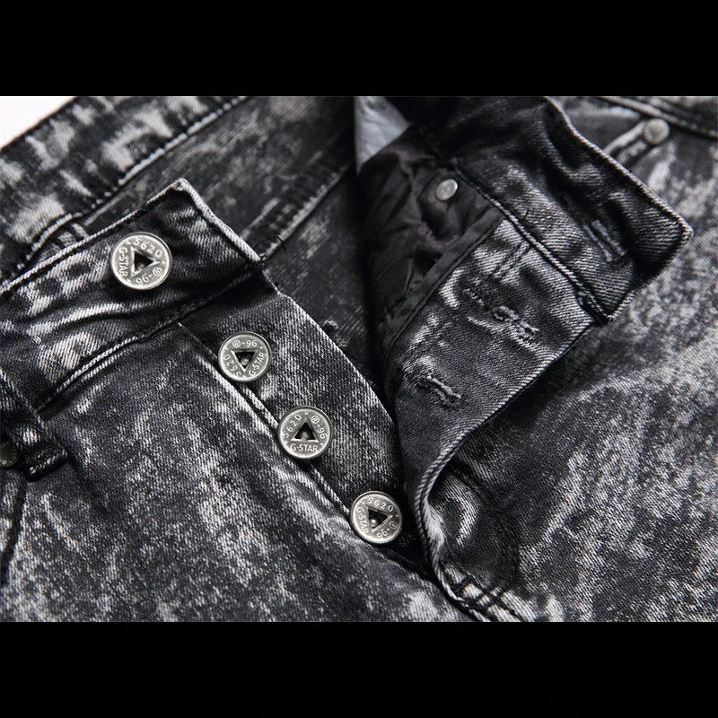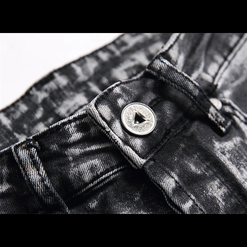 Лидер продаж, мужские джинсовые брюки, черные Стрейчевые Выбеленные серые джинсы, трендовые узкие прямые байкерские брюки на пуговицах, джинсовые брюки