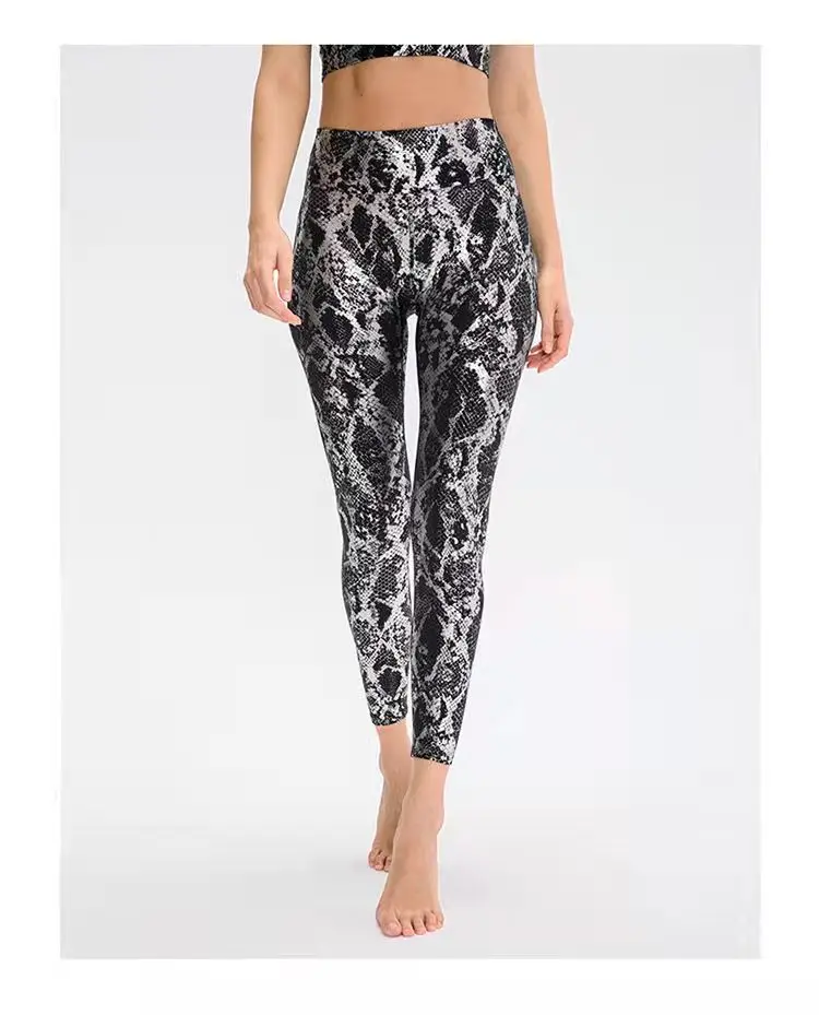 Спортивные Леггинсы с высокой талией для фитнеса с принтом змеиной кожи, женские колготки с эластичным поясом, леггинсы, женский наряд пуш-ап для бега, штаны для йоги