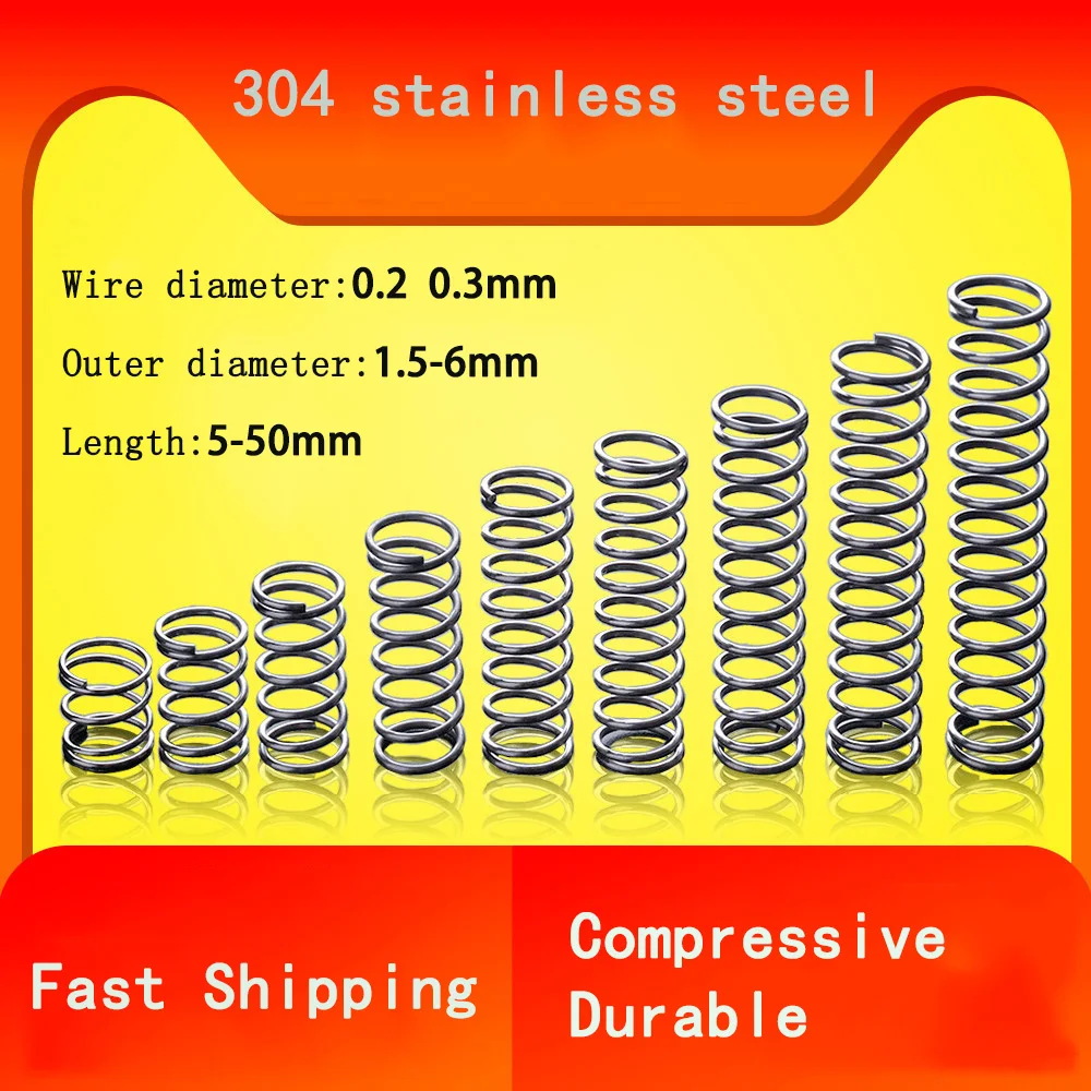 Пружина сжатия 0,2, 0,3 мм, нержавеющая сталь, пружина сжатия 304, SUS, диаметр пружины 0,2, 0,3 мм, Y-обратная пружина ротора, 30 шт.