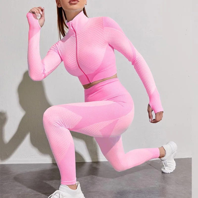 Комплект для йоги на молнии из 2 предметов, бесшовный комплект для спортзала, спортивная одежда, Топ с длинным рукавом, модные плотные комплекты для бега и йоги с эффектом пуш-ап, женская одежда для активного отдыха