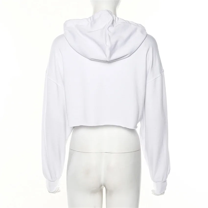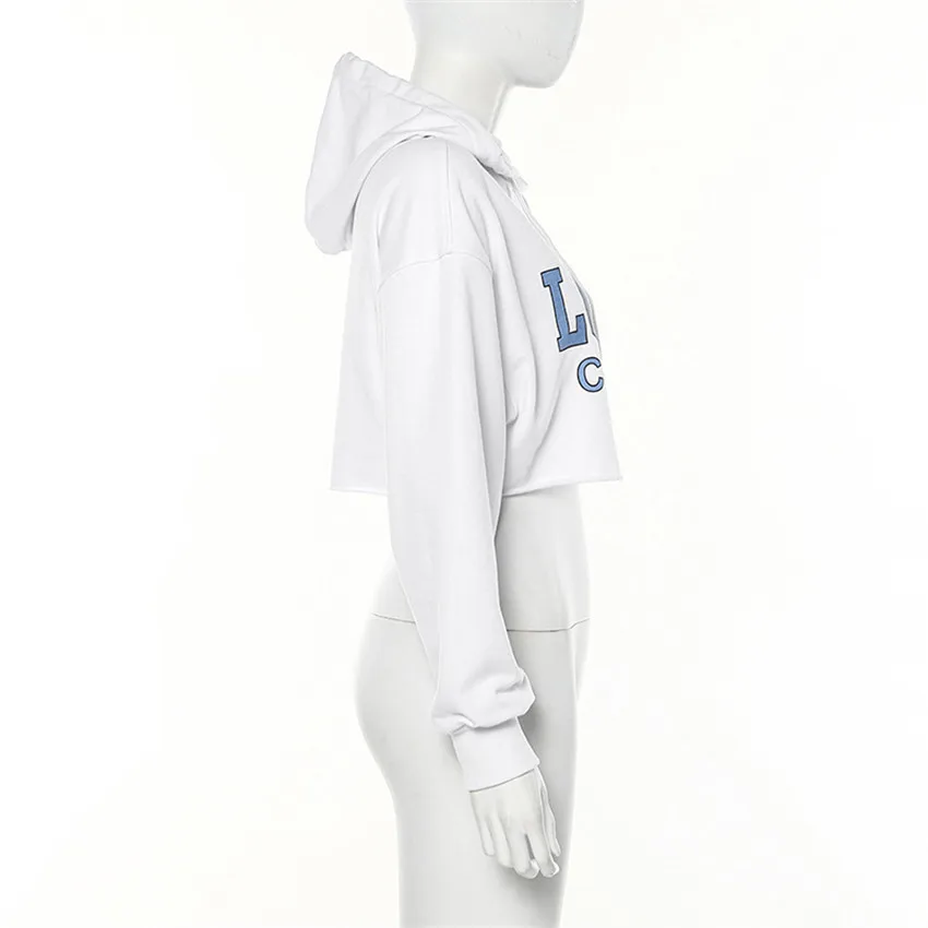Женская укороченная толстовка с буквенным принтом, белая толстовка ...