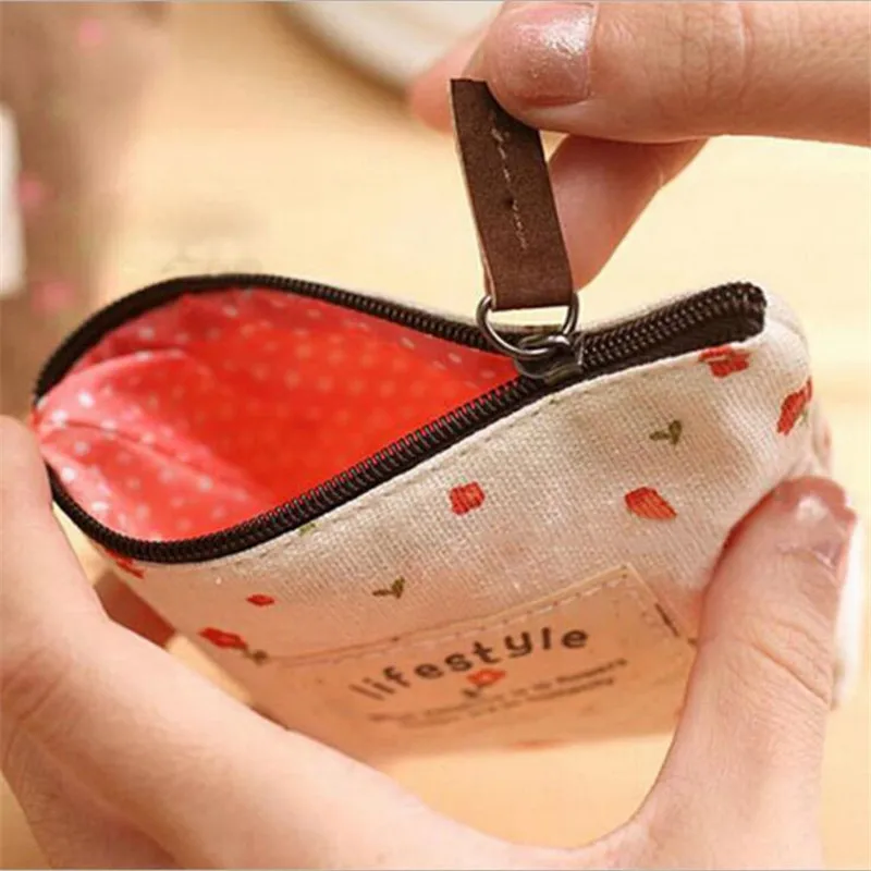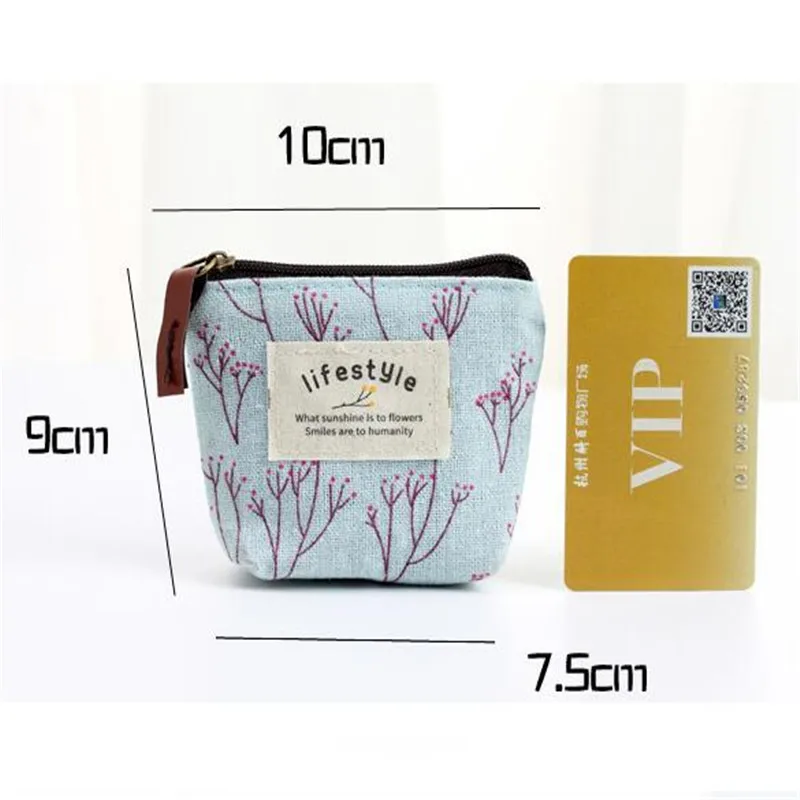 Маленький цветочный холщовый кошелек на молнии, конфетных цветов, ретро мини-кошелек для мелочи, Женский мини-кошелек для мелочи