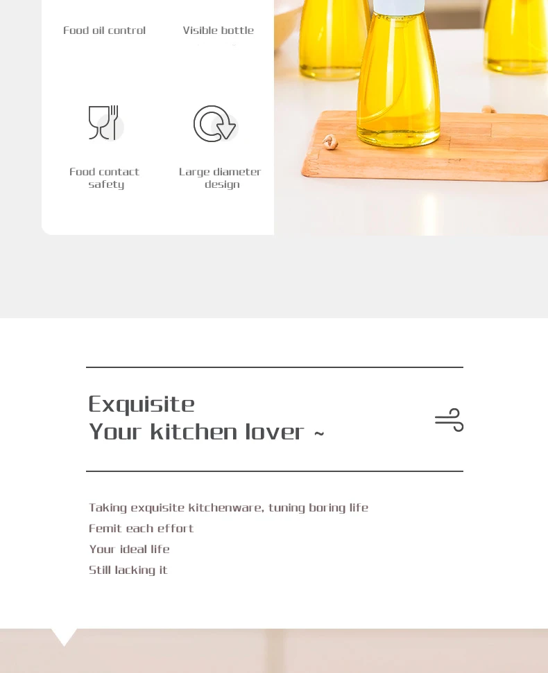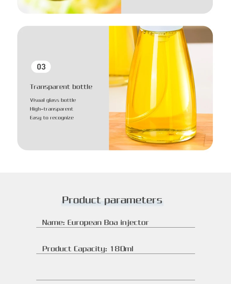 AccommodateAll kinds of liquids (oil, vinegar, soy sauce, lemon juice, wine)