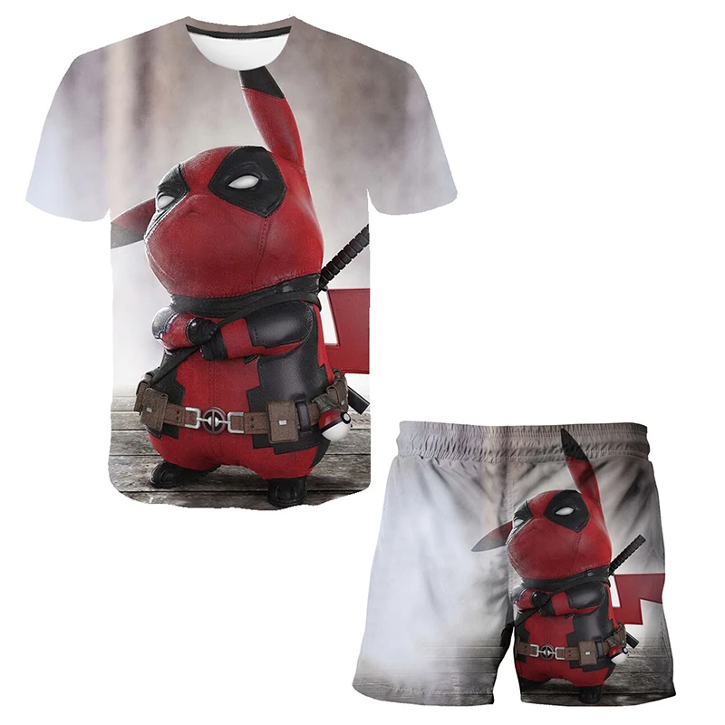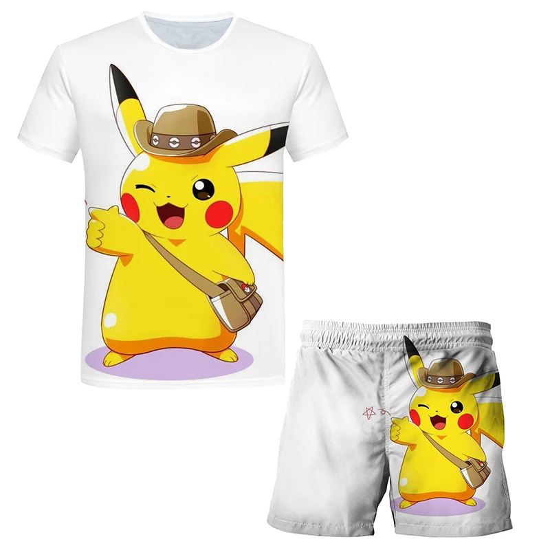 Новинка, летние детские комплекты, костюмы с 3D покемоном, 2022 ком...