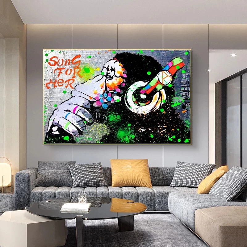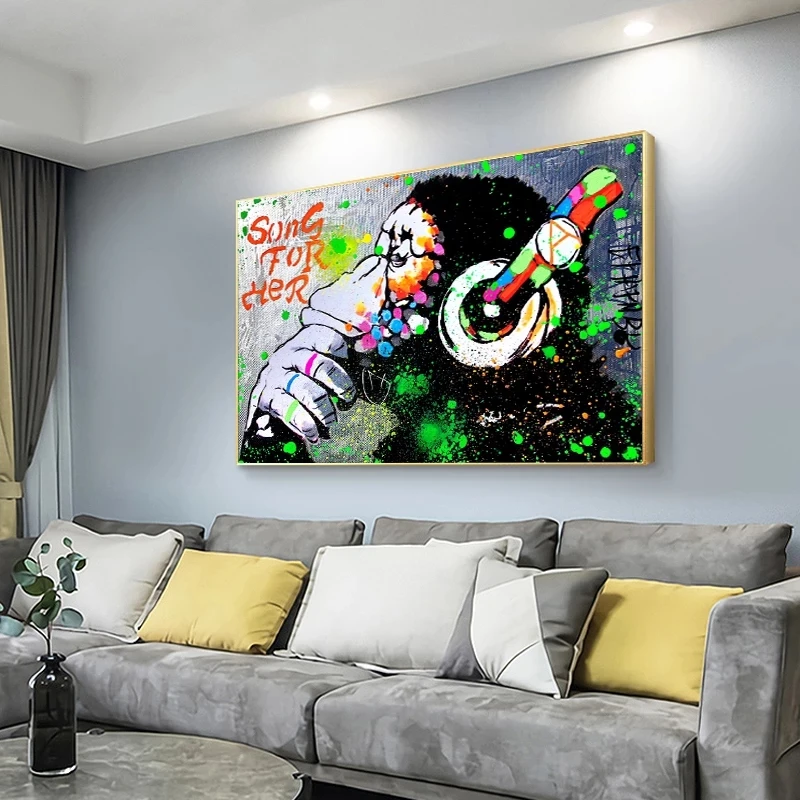 Граффити DJ обезьяна холст художественные плакаты и печать Бэнкси животные фотография для гостиной домашний декор