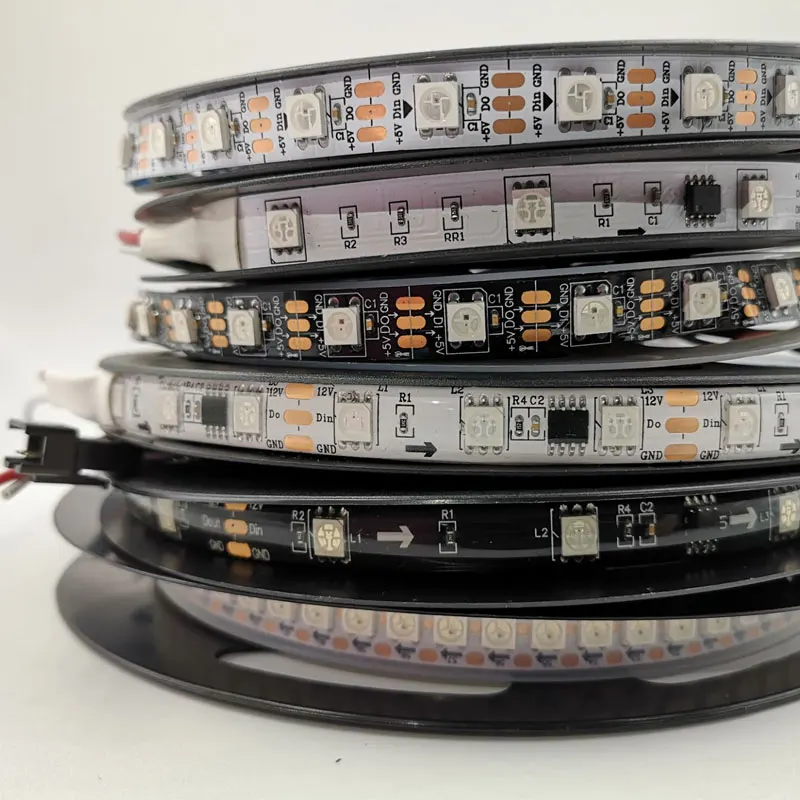 Умная светодиодная Пиксельная лента WS2812B, 5 м, чернаябелая печатная плата, 3060144 светодиодовm WS2812 IC;WS2812Bm 3060144 пикселей, IP30IP65IP67 DC5V