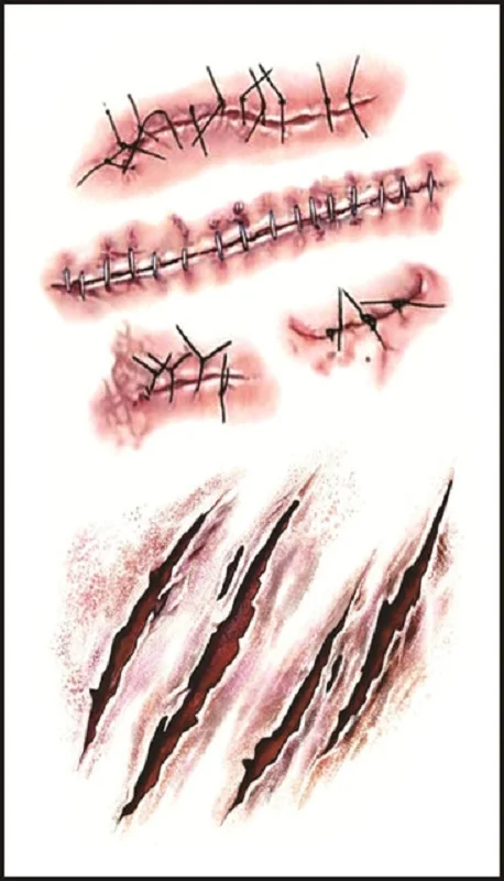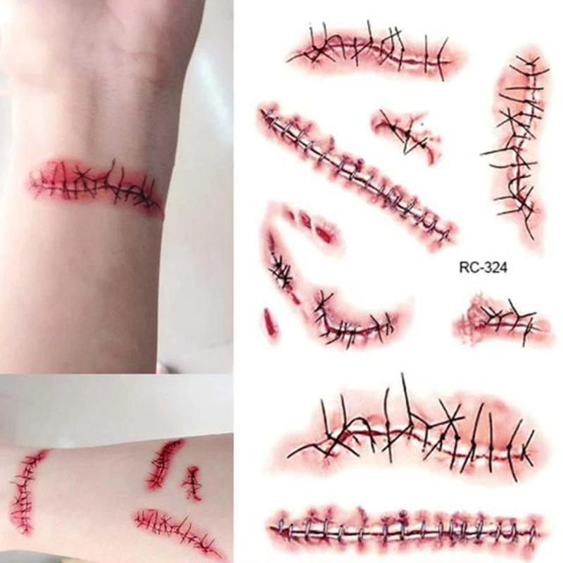 Наклейка-Татуировка для Хэллоуина, 5 шт., имитация ужасов, кровоточивости, шрамов, наклейка DIY, декор для Хэллоуина, страшная кровь, наклейка с травмой