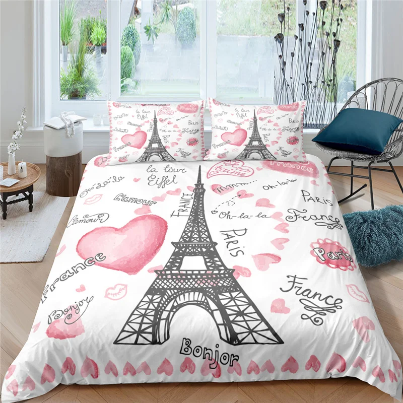 Комплект постельного белья для детей, роскошный 3D Рисунок Эйфелевой башни, пододеяльник, наволочка, домашний текстиль, односпальное и двуспальное постельное белье