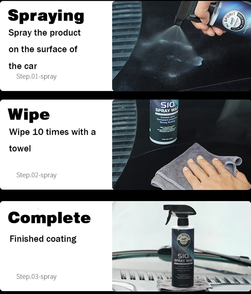 Название продукта: нанопокрытие агентОбъем продукта: 473 млСпособ хранения: помещается в прохладное сухое местоОсобенности:1. Большая емкость, одна бутылка может использоваться 12 раз, универсальна для всего внешнего вида автомобиля, всех видов автомобильной краски.2. Вода в форме листьев лотоса, не загрязняет и легко моется: пыль, грязь и другие пятна легко прилипают к поверхности краски, чтобы сделать поверхность краски грязной, с эффектом листьев лотоса после нанесения покрытия, улучшите чистку поверхности краски и гидрофобность3. Повышение твердости и уменьшение царапин: эрозия песка вызывает различные царапины на поверхности краски, формируя защитный слой после покрытия, уменьшение или Предотвращение царапин, вызванных внешними силами, и уменьшение степени повреждения краски.4. Высокая термостойкость, отсутствие следов горения: после воздействия солнечного света и ультрафиолетового излучения, это вызовет окислительное выцветание краски. После использования этого распыленного вручную воска он может эффективно противостоять окислительному обесцвечиванию, вызванному высокой температурой, и сделать краску ярче.5. Формируя слой покрытия, яркий, как новый: с использованием автомобиля, различные вещества в воздухе медленно реагируют с автомобильной краской для коррозии краски автомобиля, так что поверхность краски медленно тускнеет, и после покрытия, Слой покрытия формируется для восстановления краски в заводском состоянии.6. Конструкция уплотнения: герметичная с бумагой из оловянной фольги, чтобы предотвратить нестабильность дорожной поверхности и протекание во время транспортировки.7. Вращающееся сопло: поверните, чтобы выключить или включить, чтобы избежать утечки, когда не используется, во избежание ненужных отходов!8. Простота в эксплуатации: один посыпать и один протирать, Легкое покрытиеУпаковочный лист
