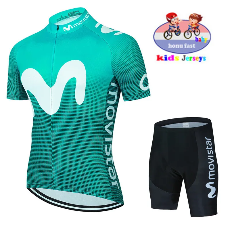 2022 флуоресцентный зеленый Детский командный дышащий велосипедный Джерси Movistar для мальчиков велосипедная одежда Детский Комплект Джерси для горного велосипеда