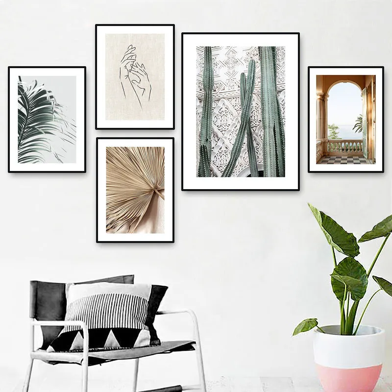 Картина на холсте в скандинавском стиле с изображением кактуса, зеленых растений, Листьев, Постер мусульманский фотографии архитектуры для гостиной, Современный домашний декор TB224