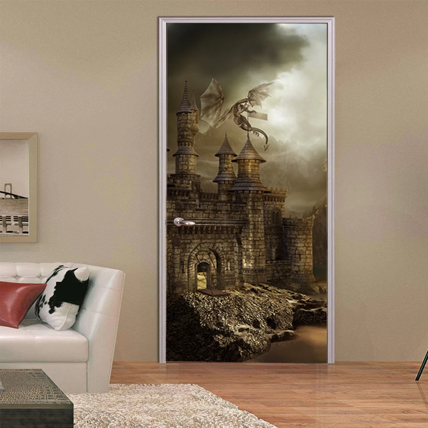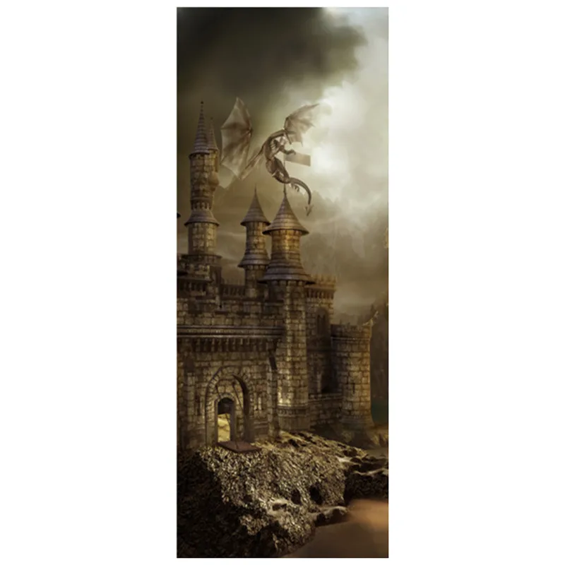 Фэнтези древний замок 3d дверь Фреска Виниловые наклейки на стену украшение детской комнаты Забавный мультфильм плакат пейзаж обои 77*200 см