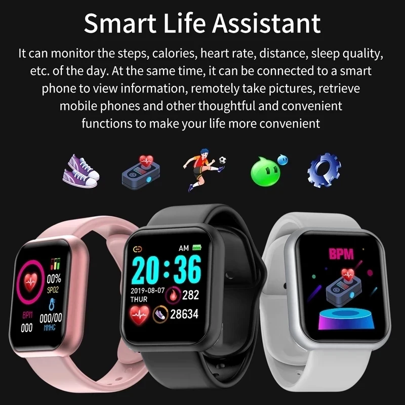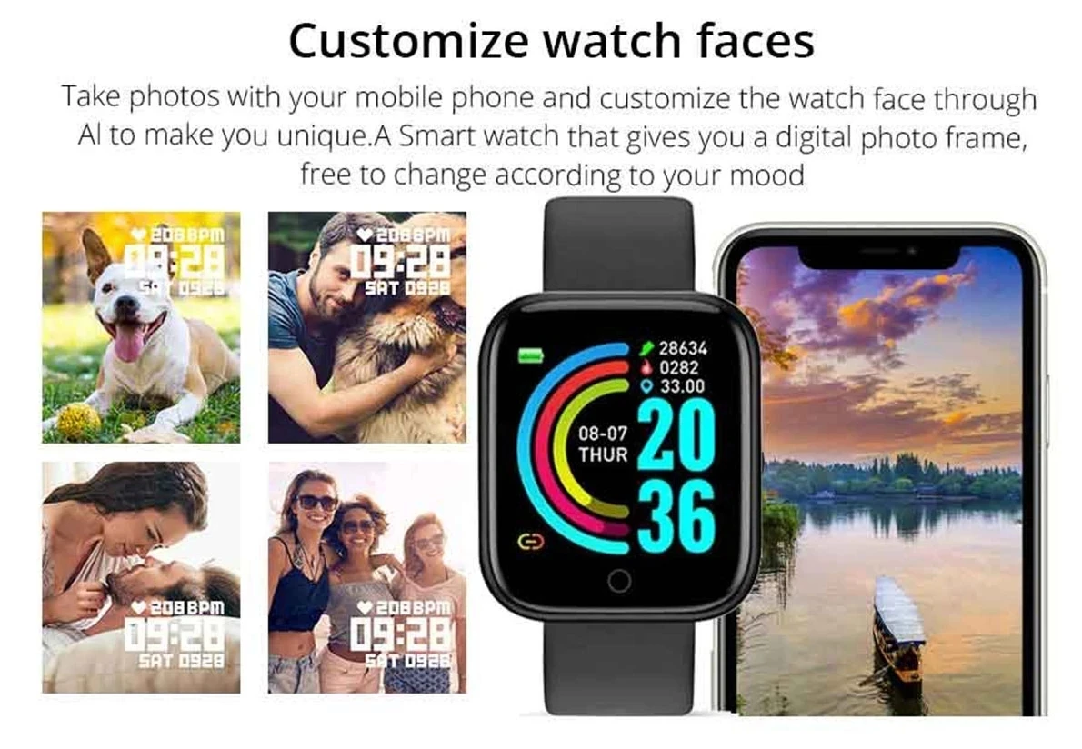 Смарт-часы D20 Y68 для мужчин и женщин, обновленные спортивные умные часы с пульсометром, с поддержкой фото и музыки, для ios и Android