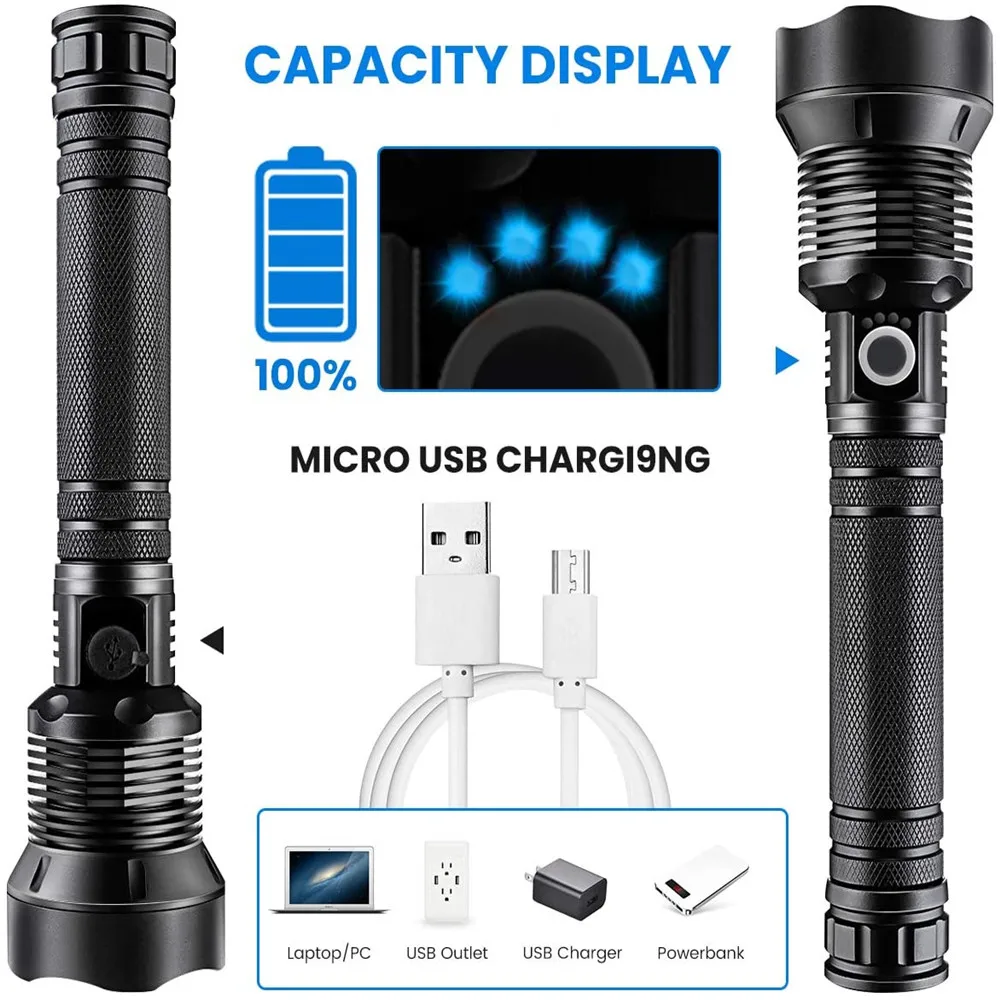 Супер светильник-светильник: 20000 высокий световой поток, светильник светодиодный, лампа обеспечивает яркий светильник, мощный луч. Легко светильник на всю комнату или фокусируется на предметах до 1000 футов! Подходит для домашнего и наружного использования, прогулок с собакой, ночного использования и экстренного использования. Лучший подарок для мужчин и мальчиков