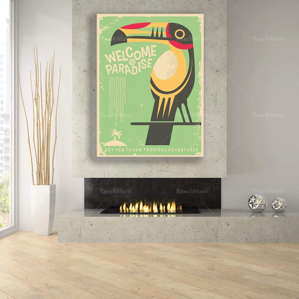Винтажный постер красочный тукан, праздничный тематический постер для путешествий