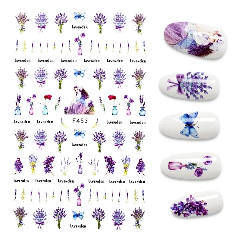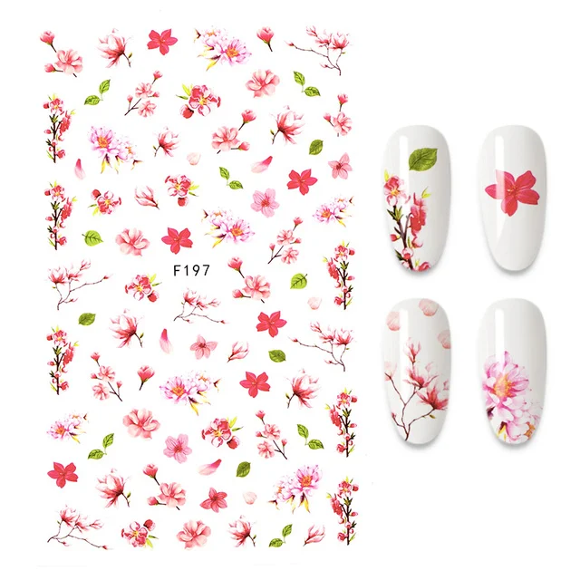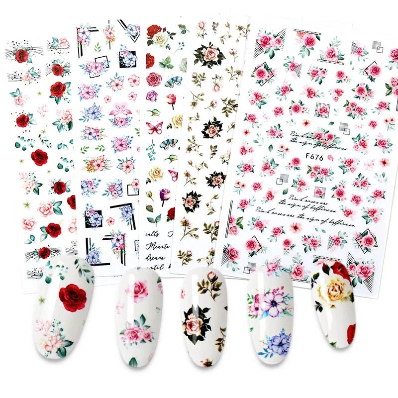 Наклейки для ногтей с цветами и листьями, переводные наклейки для н...
