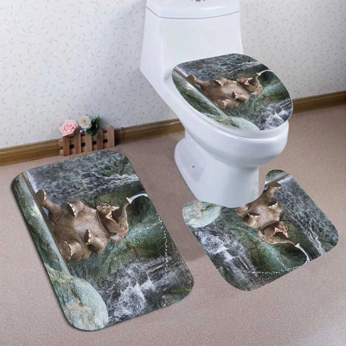 Размер: коврик/крышка для унитаза/коврик для ванной: 45x36 см/43x34 см/74x45 см занавеска для душа: 180x180 см + 12 крючков