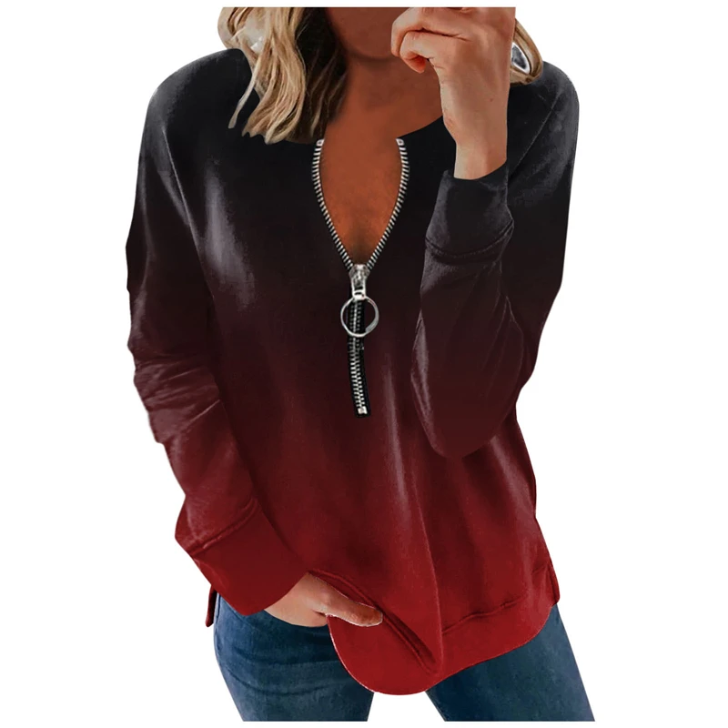 Женский пуловер с градиентным принтом, повседневный свитшот на молн...