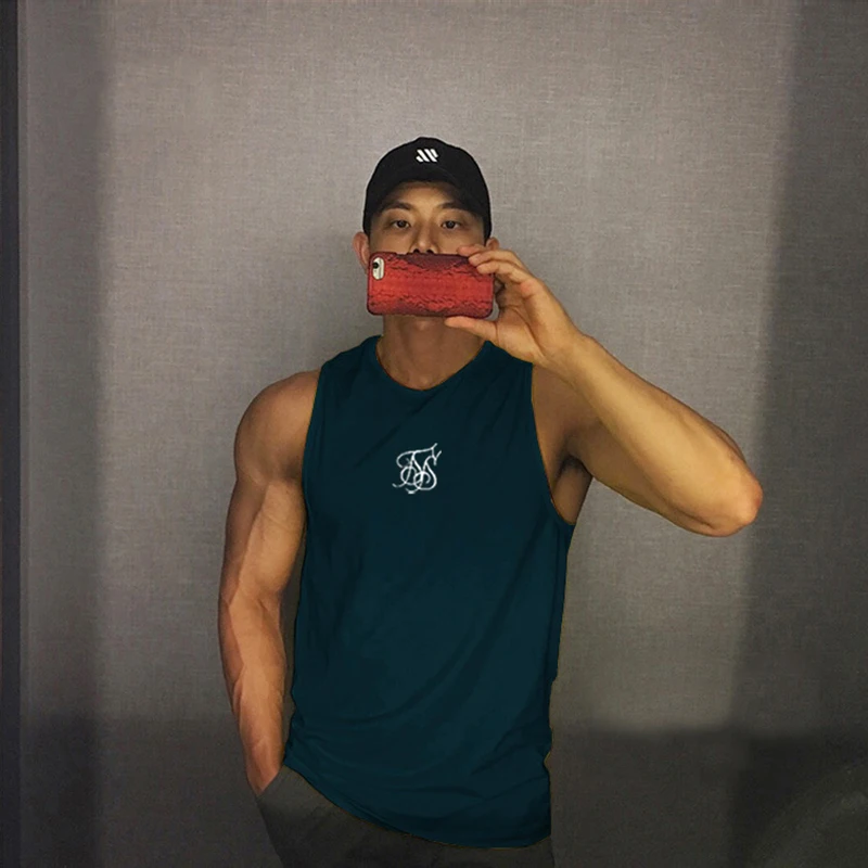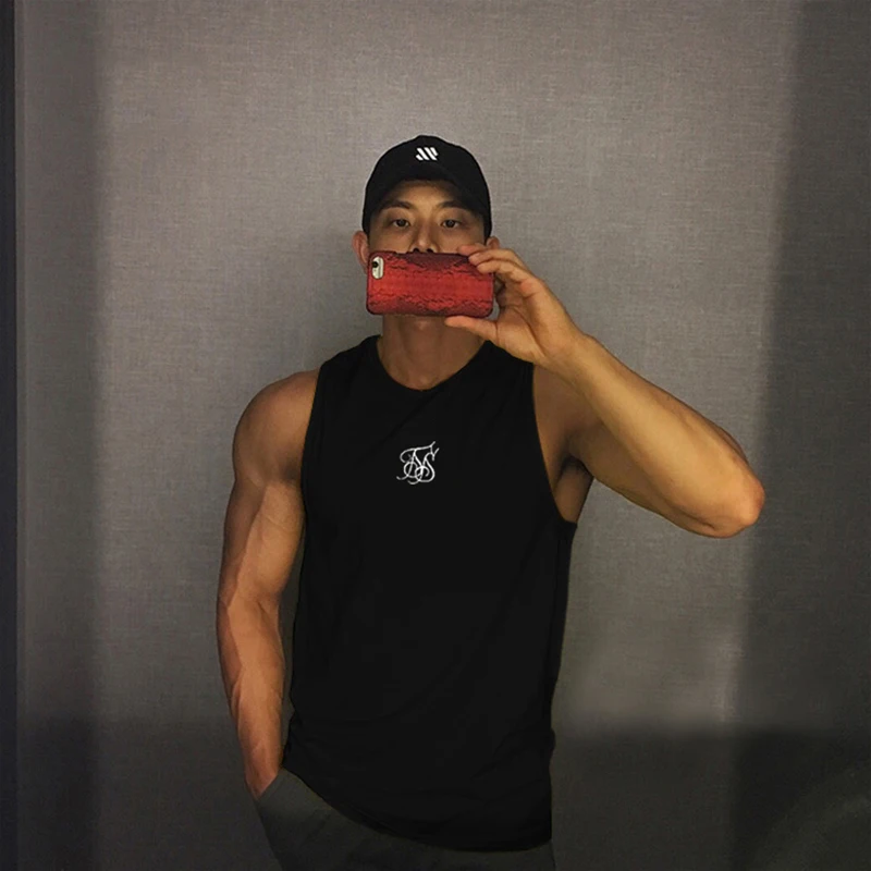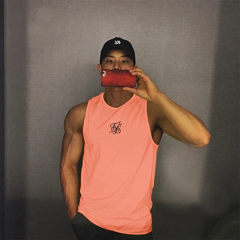 Майка SikSilk мужская, дышащая, без рукавов, с принтом логотипа