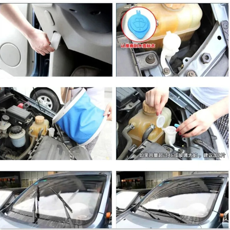 Этот продукт подходит для температуры выше нуля градусов Цельсия. Откройте капот автомобиля, найдите бак стеклоочистителя, заполните бак водой, добавьте кусок стеклоочистителя (если стекло слишком грязное, рекомендуется добавить 2 шт.), подождите 5 минут, а затем используйте его в обычном режиме. Кусочек обычной воды можно обменять на 4л воды. В соответствии с нормальным объемом резервуара для хранения жидкости, это кусок воды, который может заменить и превосходить традиционную стеклянную воду!
