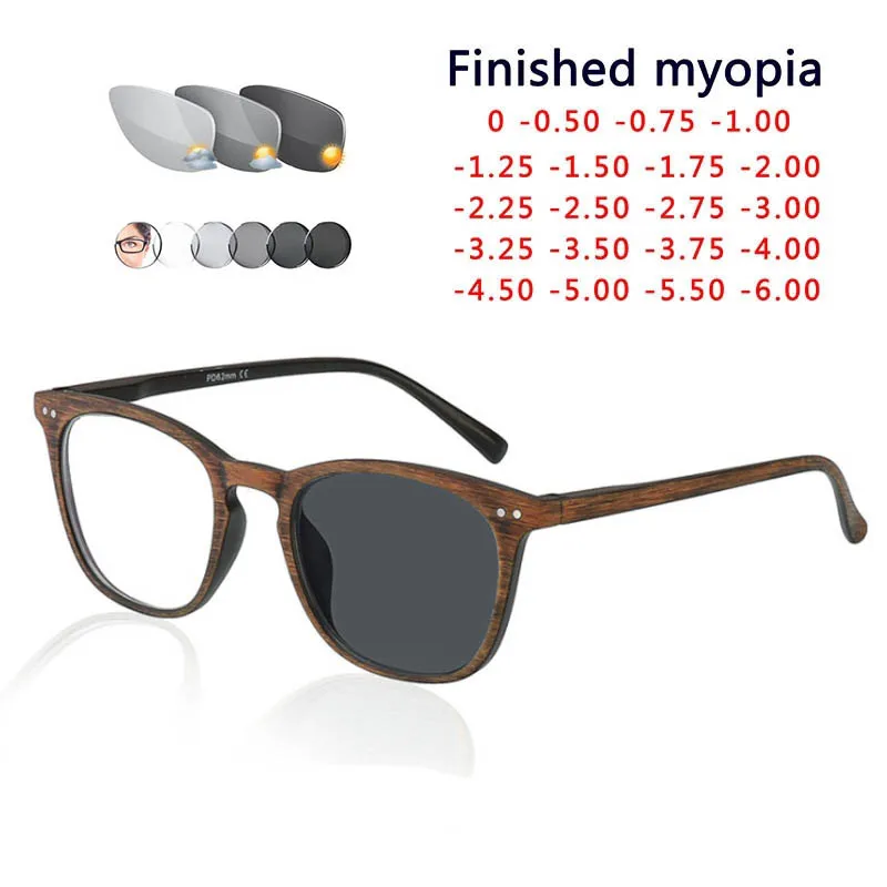 Фотохромные серые солнцезащитные очки для близорукости для мужчин и женщин от 0 до 0,5-0,75 до-6.0 оправа под дерево очки по рецепту для близорукости