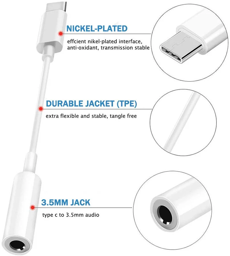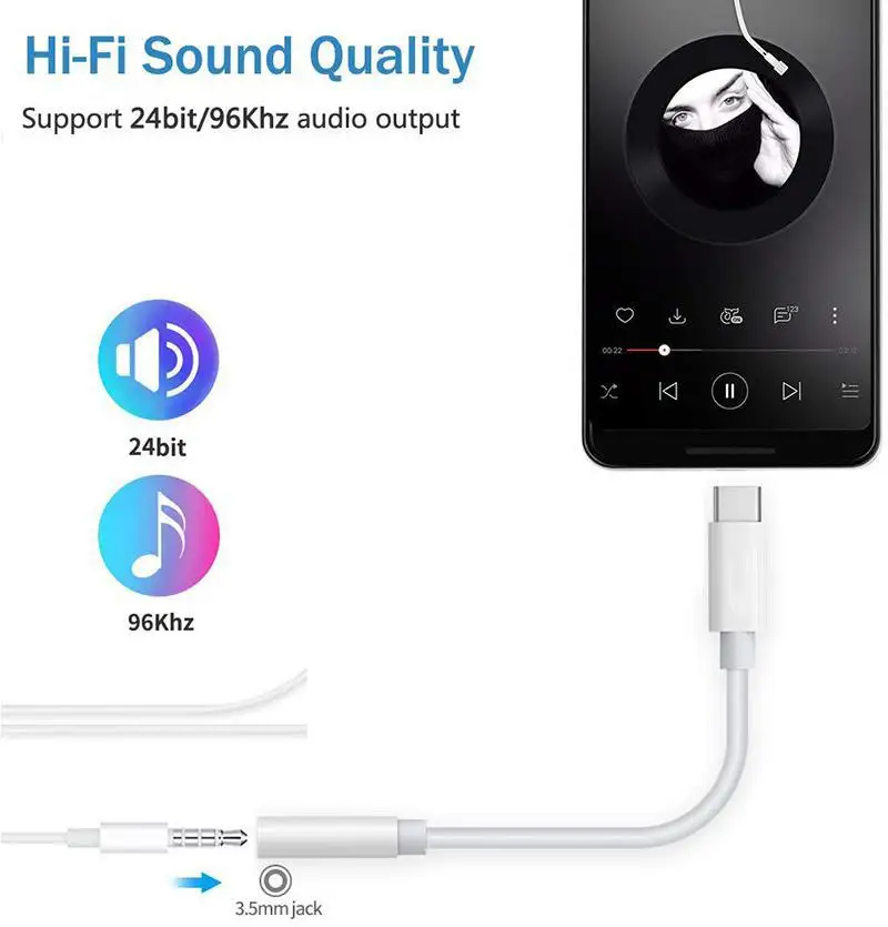 Универсальный адаптер для наушников с разъемом Lightning типа C на 3,5 мм