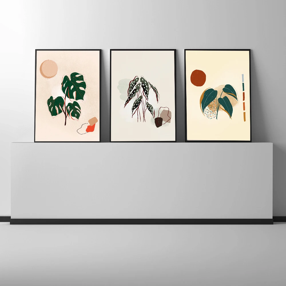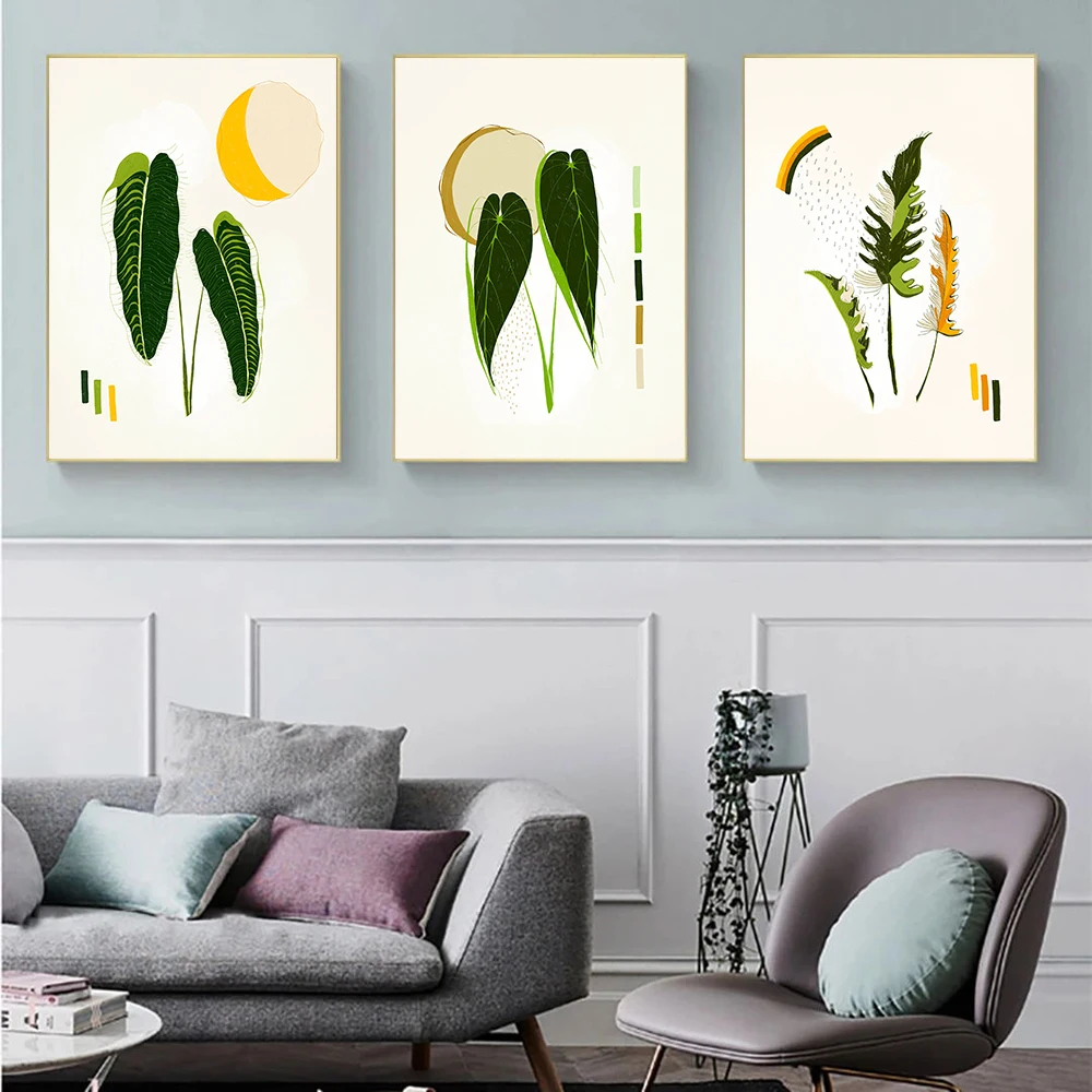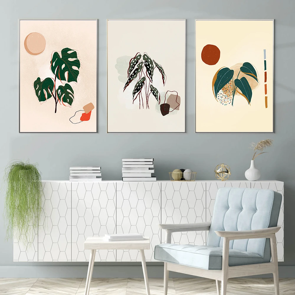 Набор с принтом растений монстеры среднего века, художественный филодендрон бегонии, швейцарские сырные растения, мини-принты, ретро современный плакат, украшение для дома