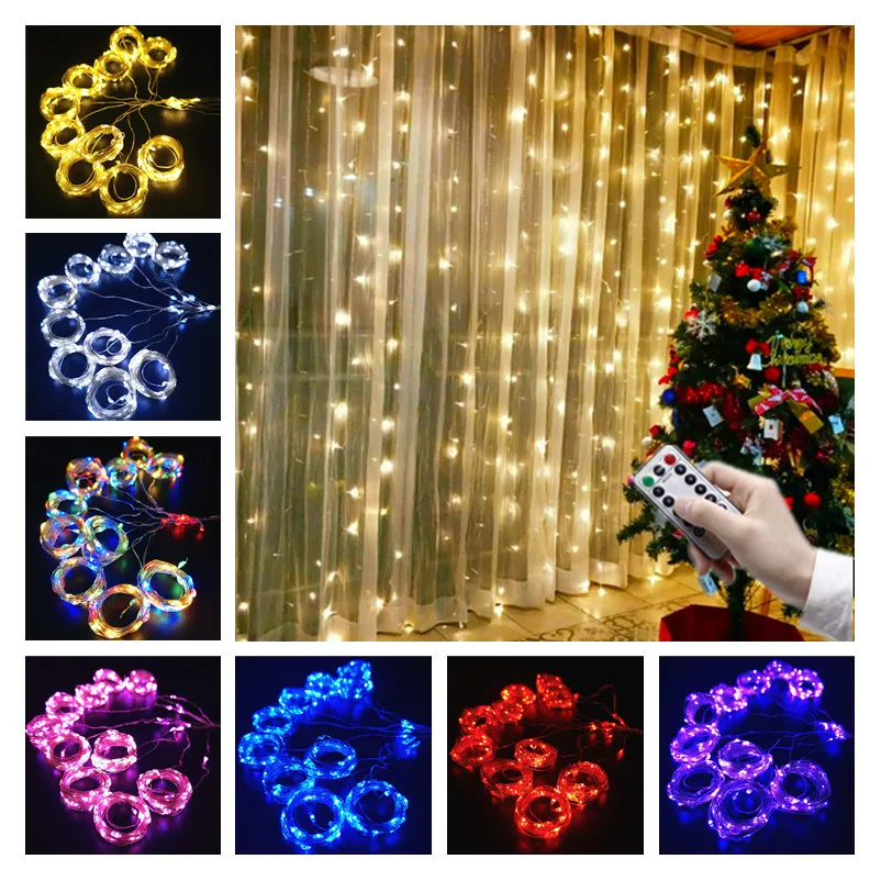 СВЕТОДИОДНАЯ Гирлянда-занавеска 3 м, гирлянды с USB и дистанционным управлением, рождественские украшения для дома, освещение комнаты, украшение для свадьбы и нового года