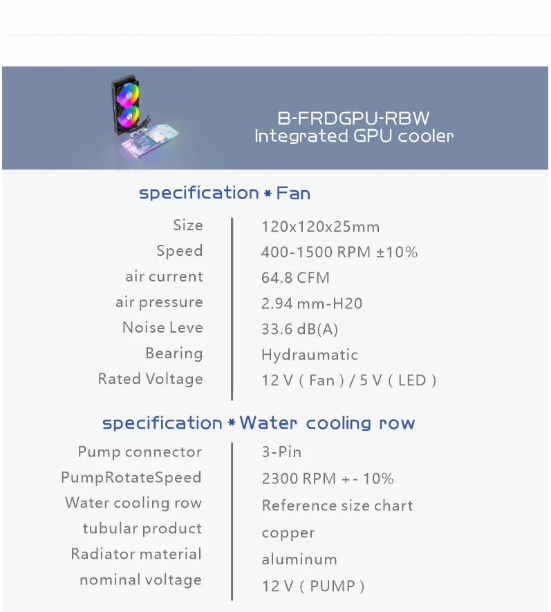 Bykski B-FRDGPU-RBW,GPU AIO Cooler для графической карты AMDNVIDIA ...