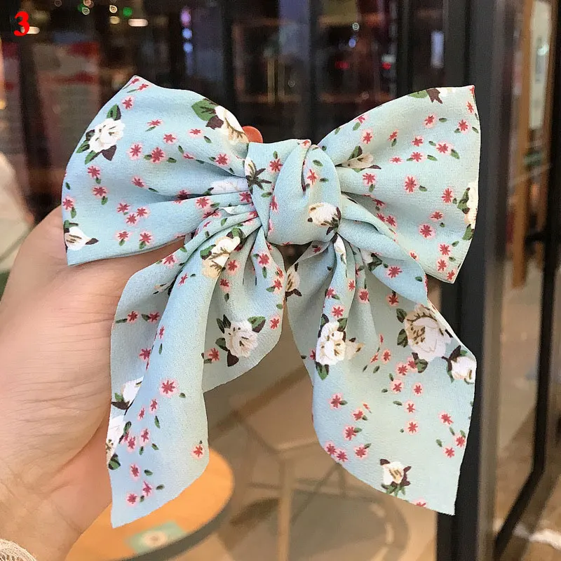 Заколка для волос женская, шифоновая, в горошек, с цветочным принтом, в стиле ретро, шифоновое в Корейском стиле
