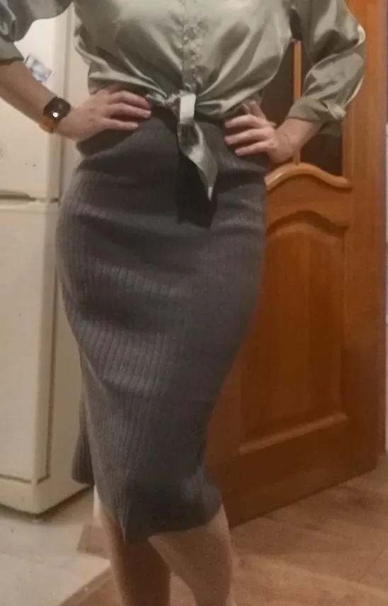 Отличная юбка, миди. Плотная, сейчас на прохладную осень будет отлично. Крупная вязка. Размер L прекрасно подошёл на 48. Хорошо тянется. Красивый цвет шоколад. Только очень долго шли до Новосибирска - месяц.