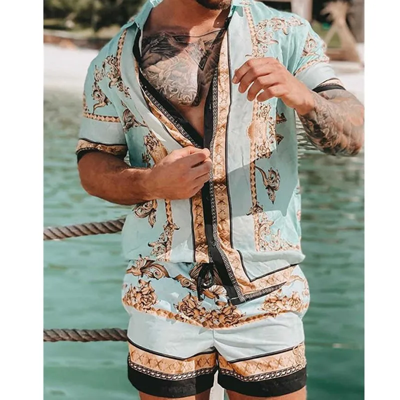 2021 новый модный Гавайский Мужской комплект с принтом летние шорты...