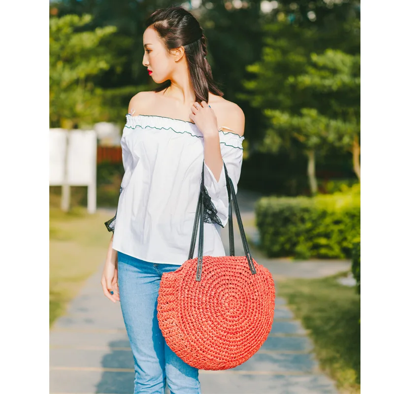 Круглая соломенная сумка, Пляжная плетеная вместительная сумка через плечо, ручная вязаная крючком летняя сумка, новинка 2021