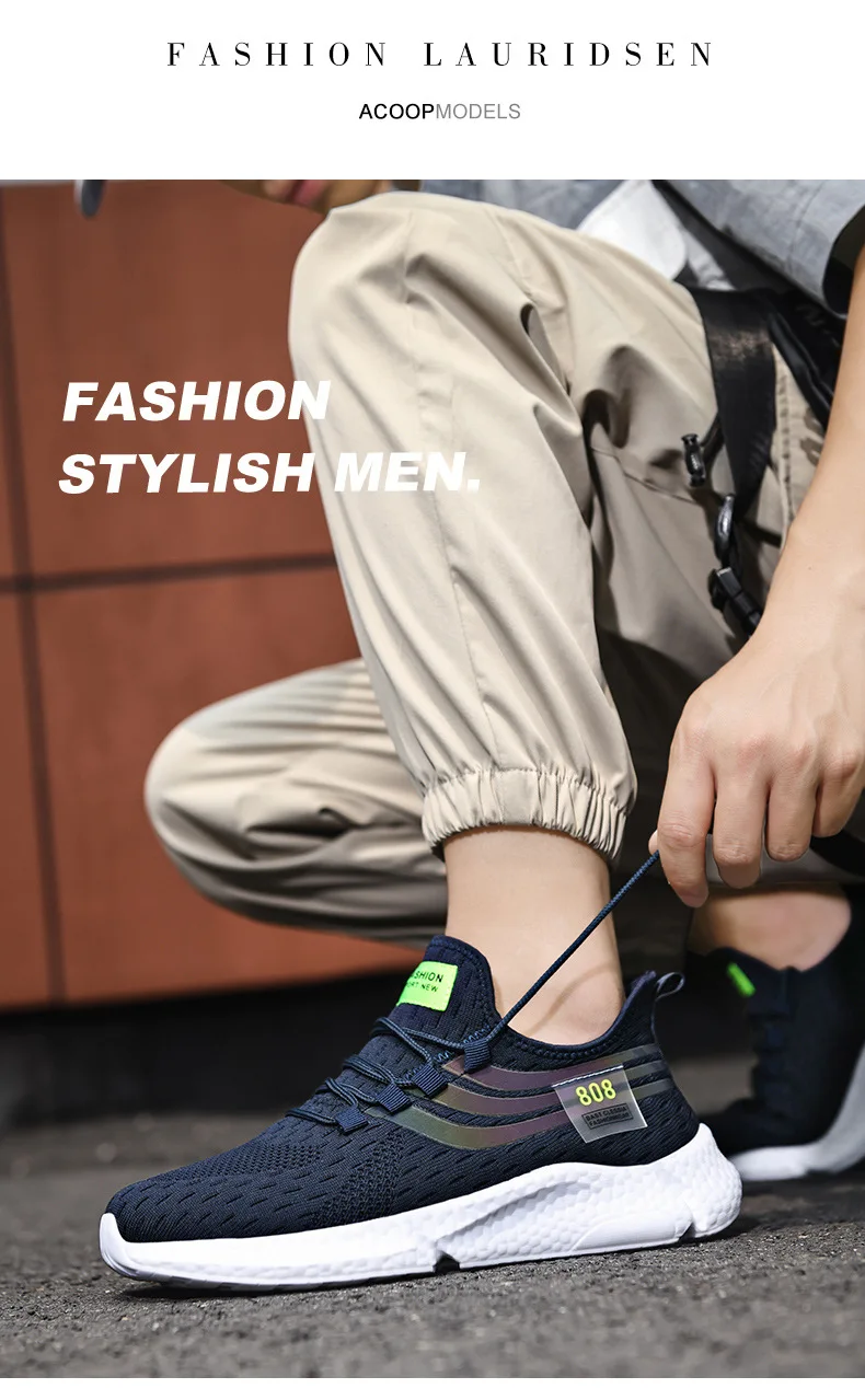 Мужские кроссовки для бега, повседневная обувь, летняя дышащая сетч...