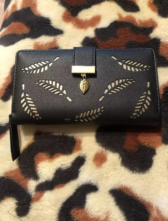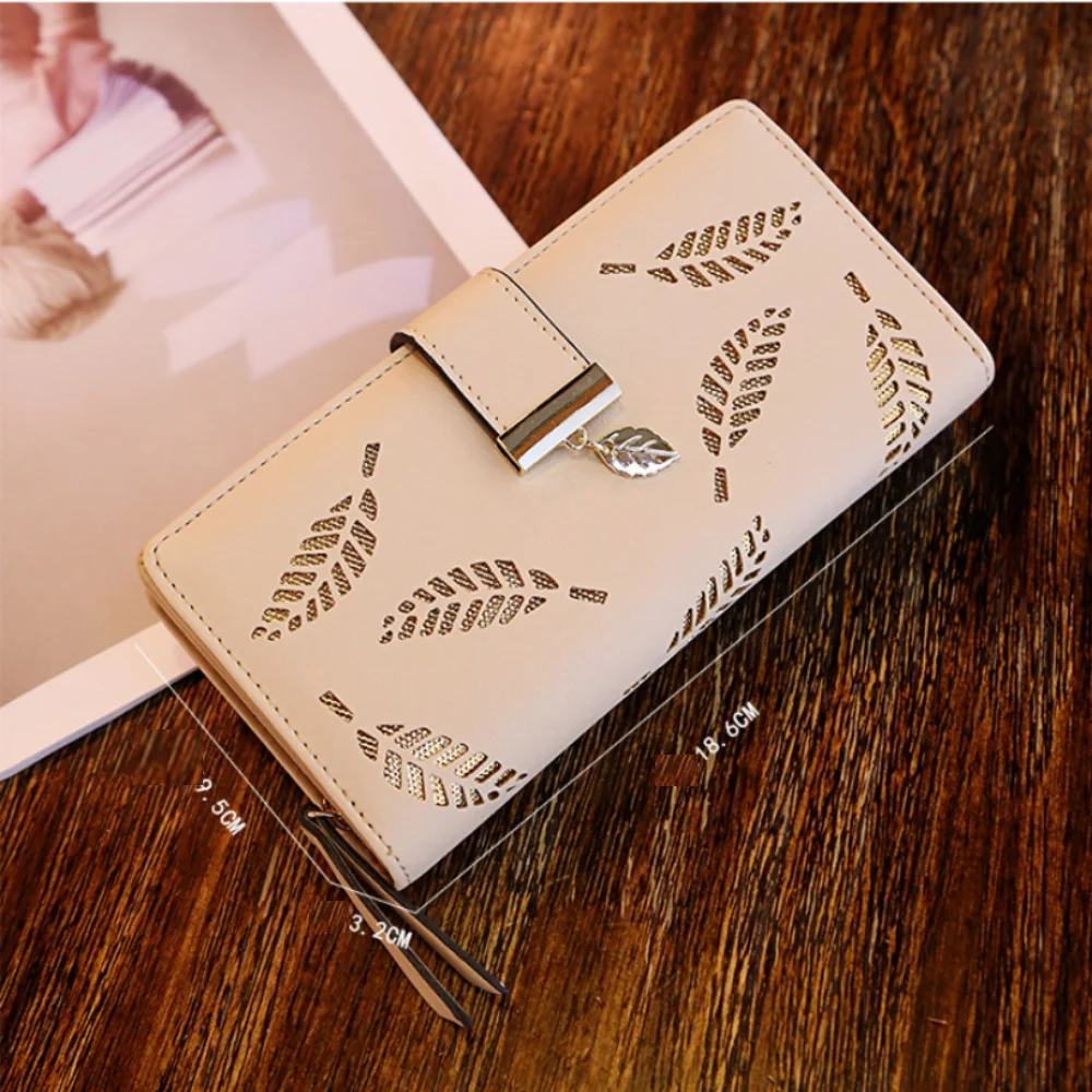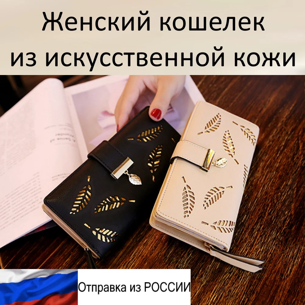 Женский кошелек из искусственной кожи Дамский удлиненный бумажник с золотыми листьями сумочка для мелочи кредитница клатч