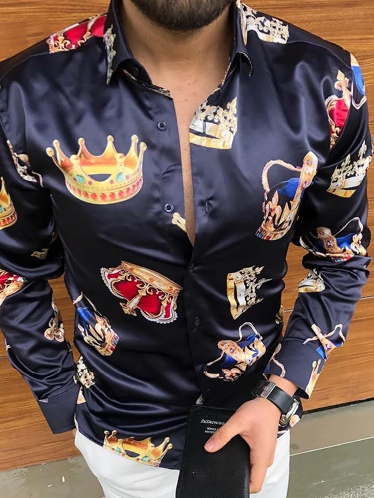 Мужские шелковые Атласные Рубашки в стиле панк с цифровым принтом, мужские облегающие Повседневные Вечерние башки с длинным рукавом и цветами