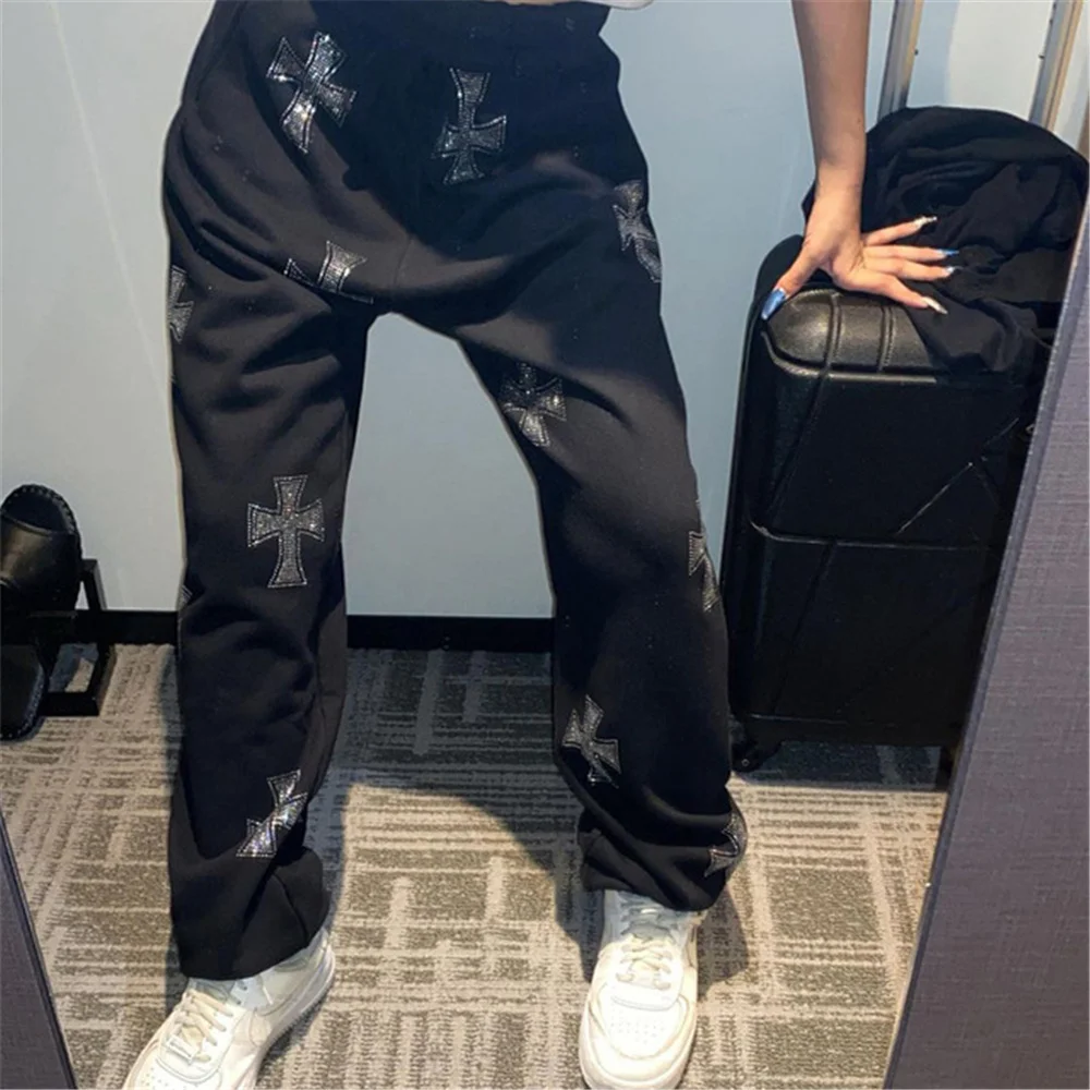 Стразы перекрестные спортивные брюки Cyber Y2k гранж джоггеры Высок...