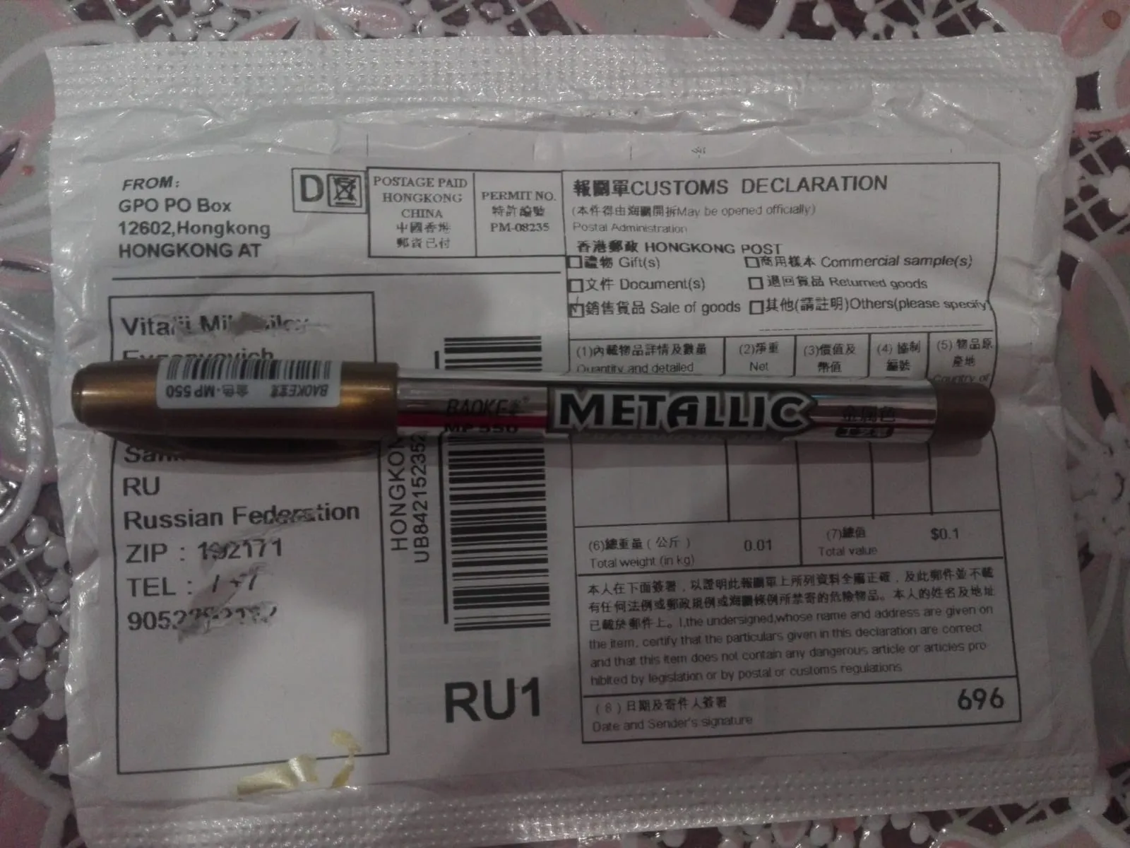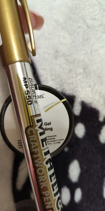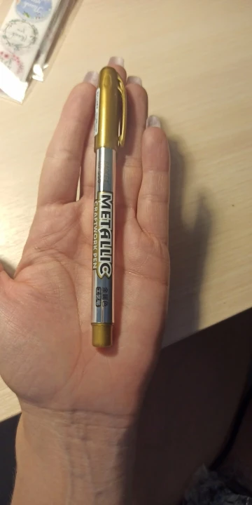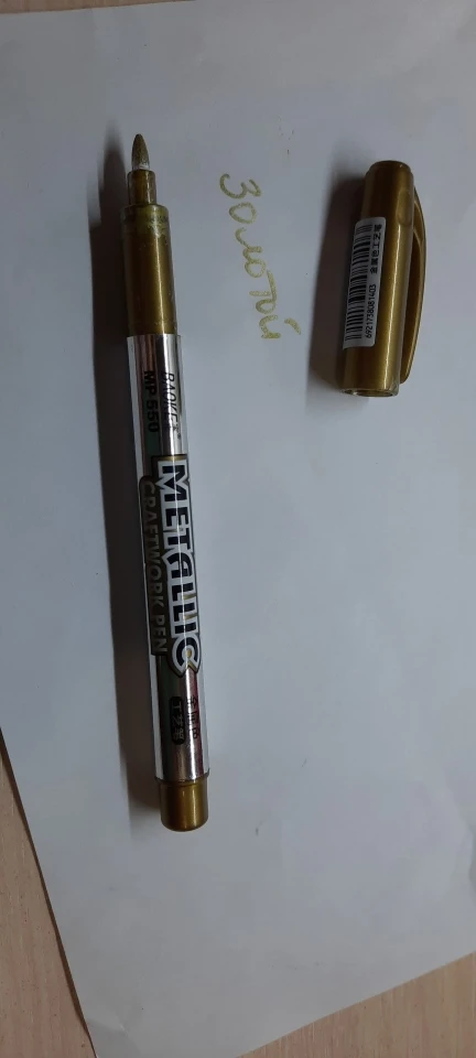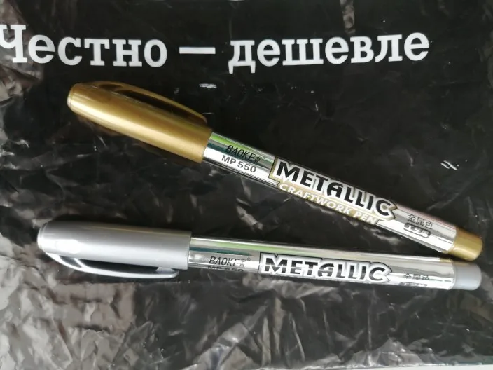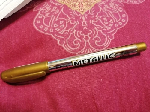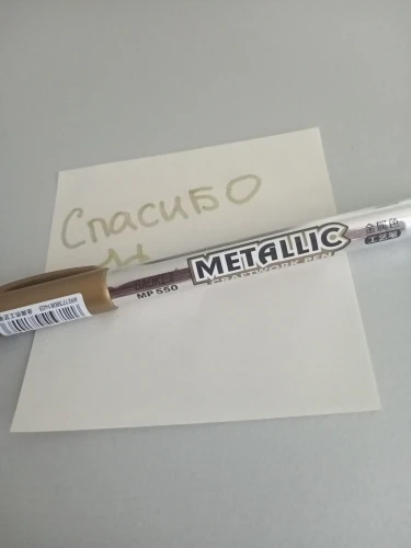 заказала 29 марта, получила 23 июня. думала, уже и не придёт. маркер хороший. золото, конечно не яркая линия, но вполне понятно, что золотой контур получается. внешне очень достойно смотрится. в руках держать приятно.