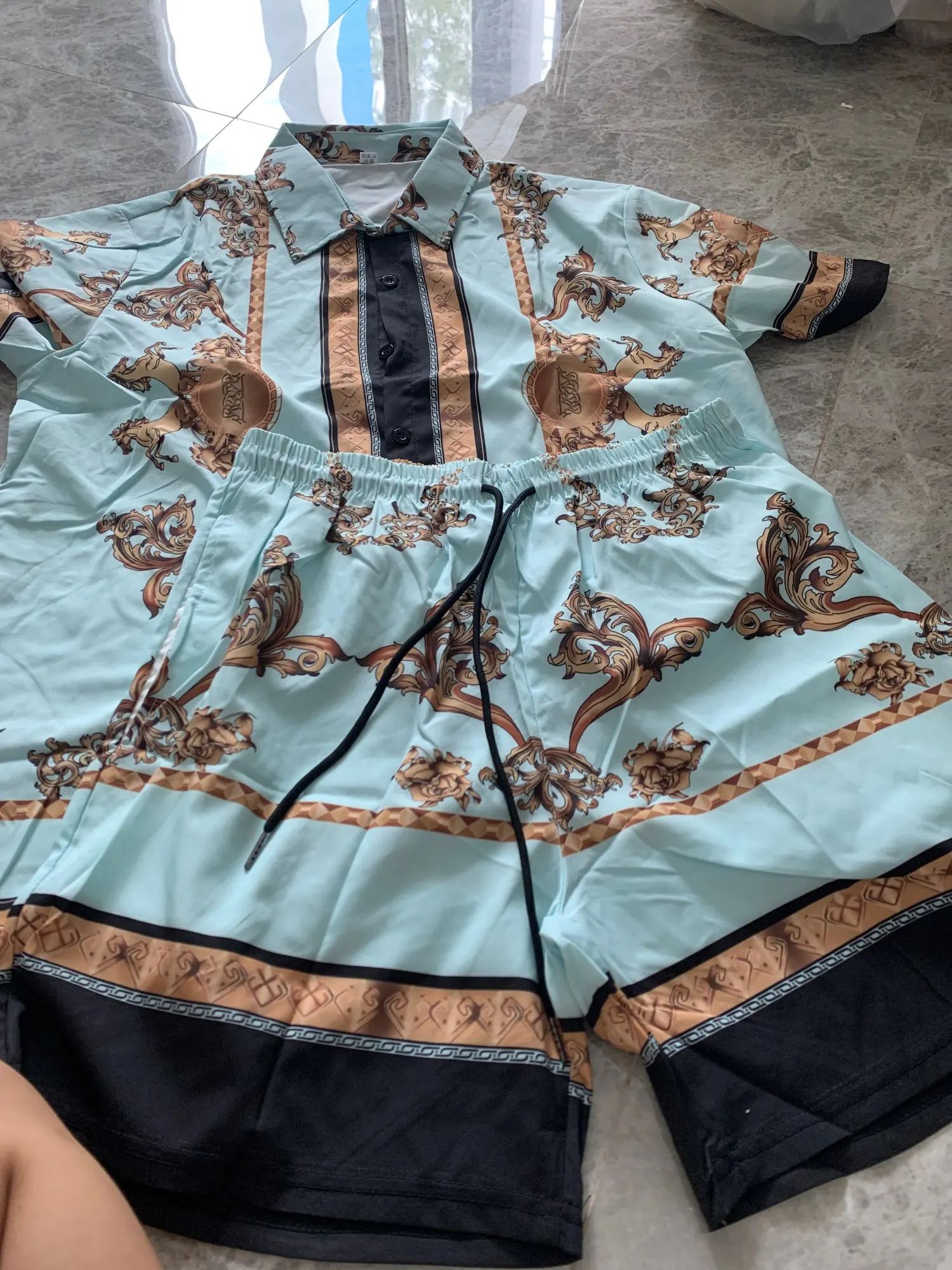 Комплект очень красивый и хорошего качества. Точный размер. Нет только шорт с карманами, чтобы быть совершенным.
