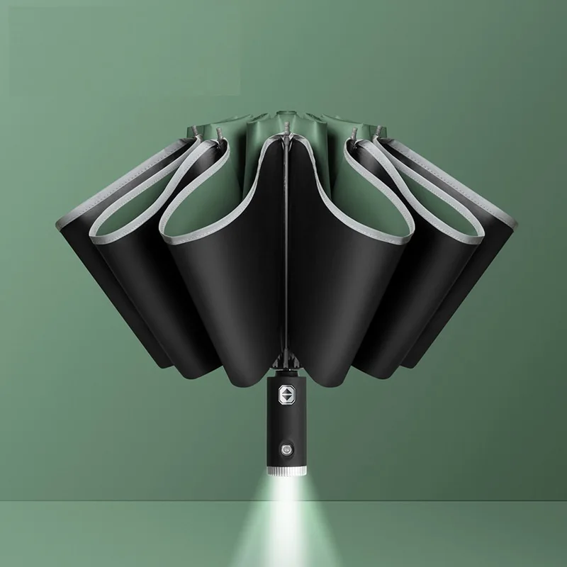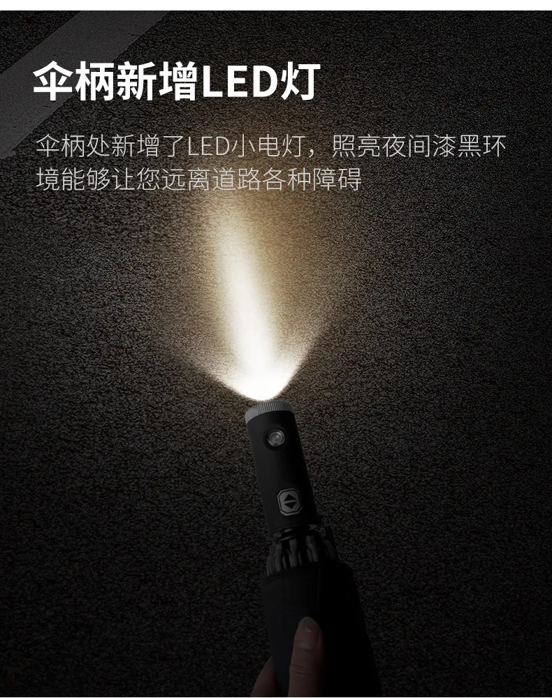 Материал зонта на ощупь необычный, Кант вроде как светоотрожающий, моглибы акумулятор с тайп С зарядкой в ручку засунуть - сейчас вроде бы не 80е годы 3 батарейки в ручке,ручка и раздвижной механизм хлипкие, но как будет в эксплуатации первый дождь и ветер покажут.