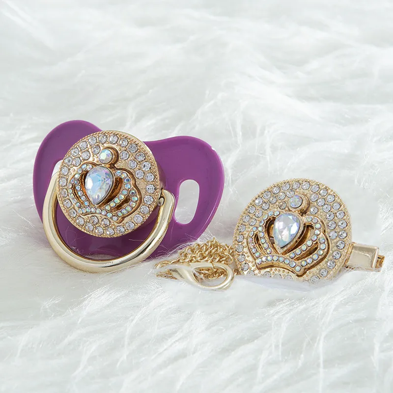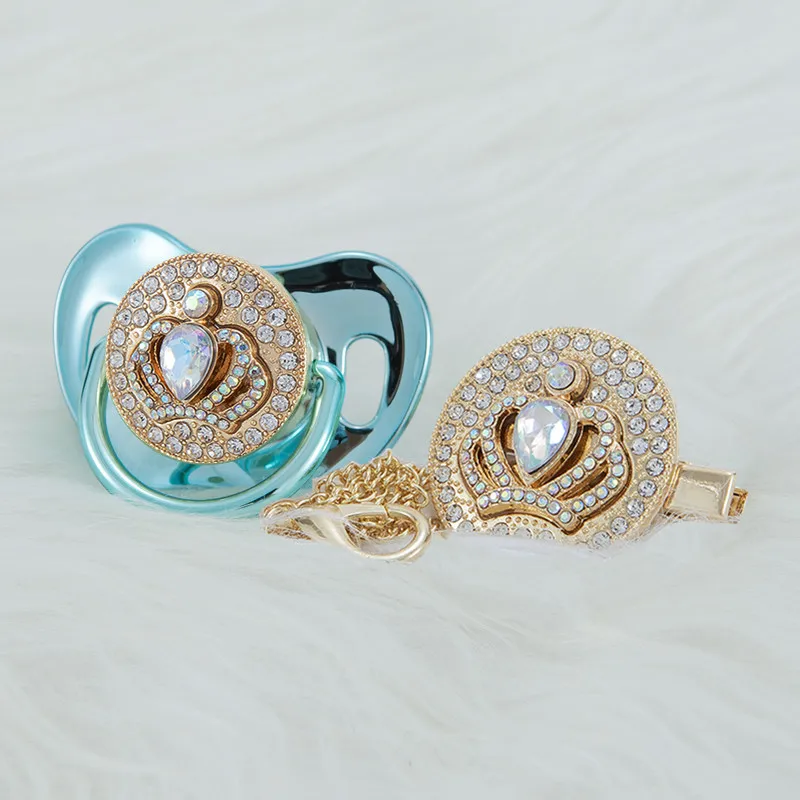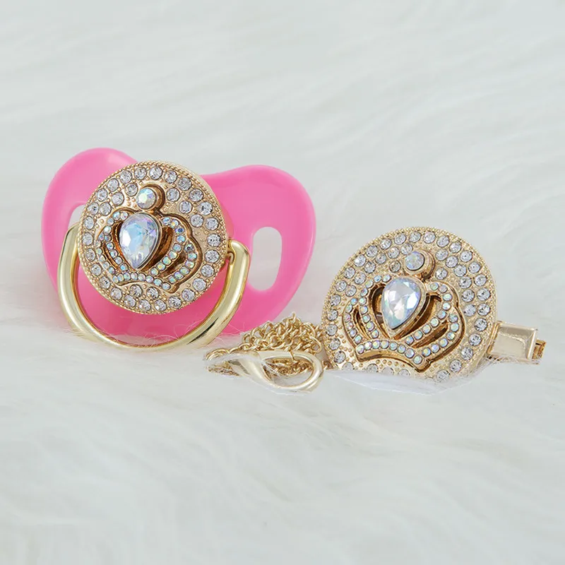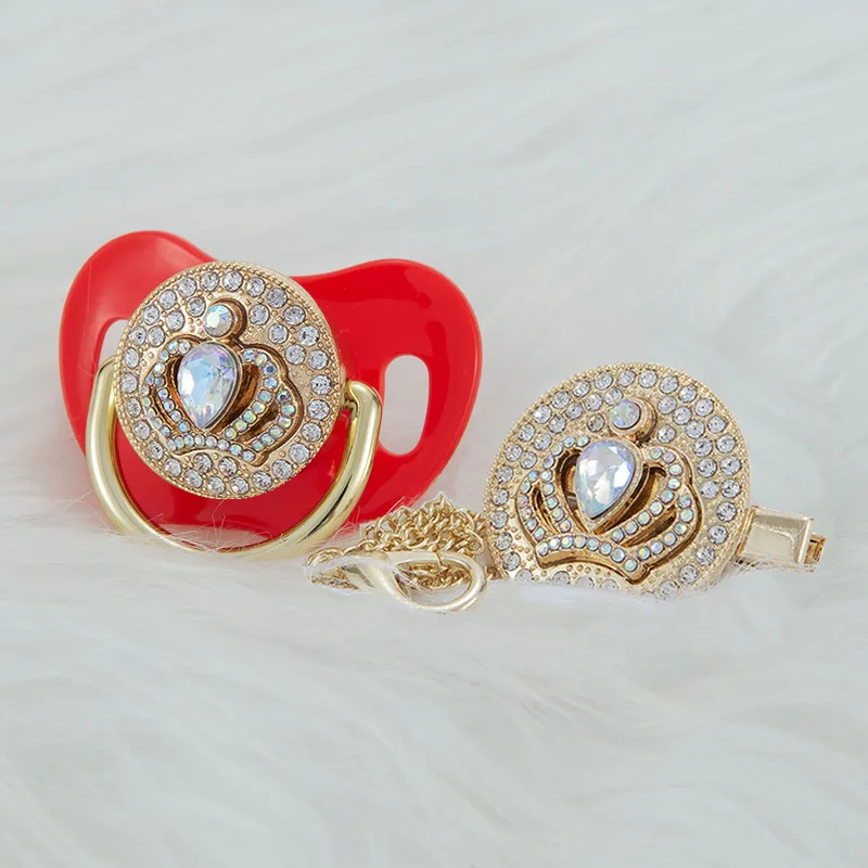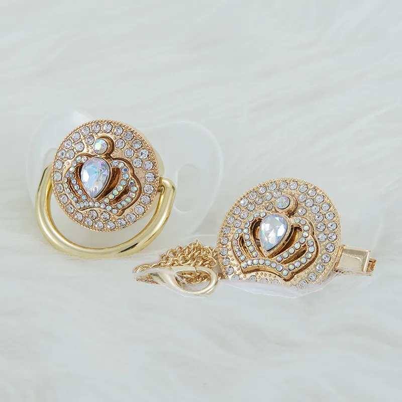 Эксклюзивная блестящая 3D Соска-пустышка MIYOCAR с короной и зажимом для соски BPA бесплатно 14k позолоченный новорожденный подарок фотография нет для ежедневного использования