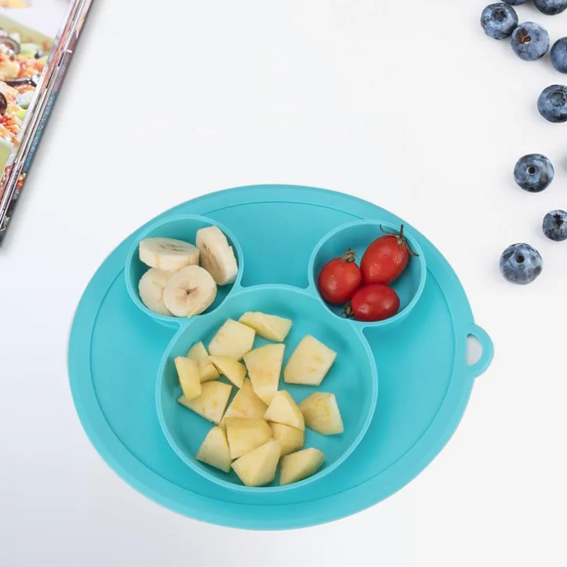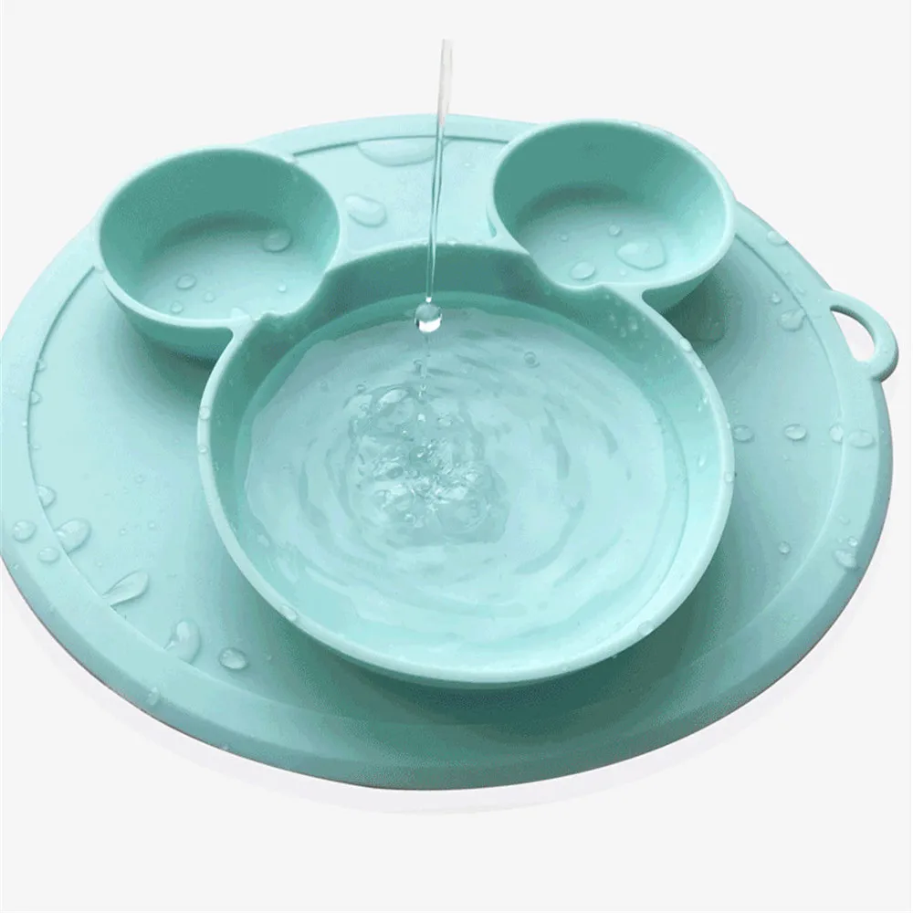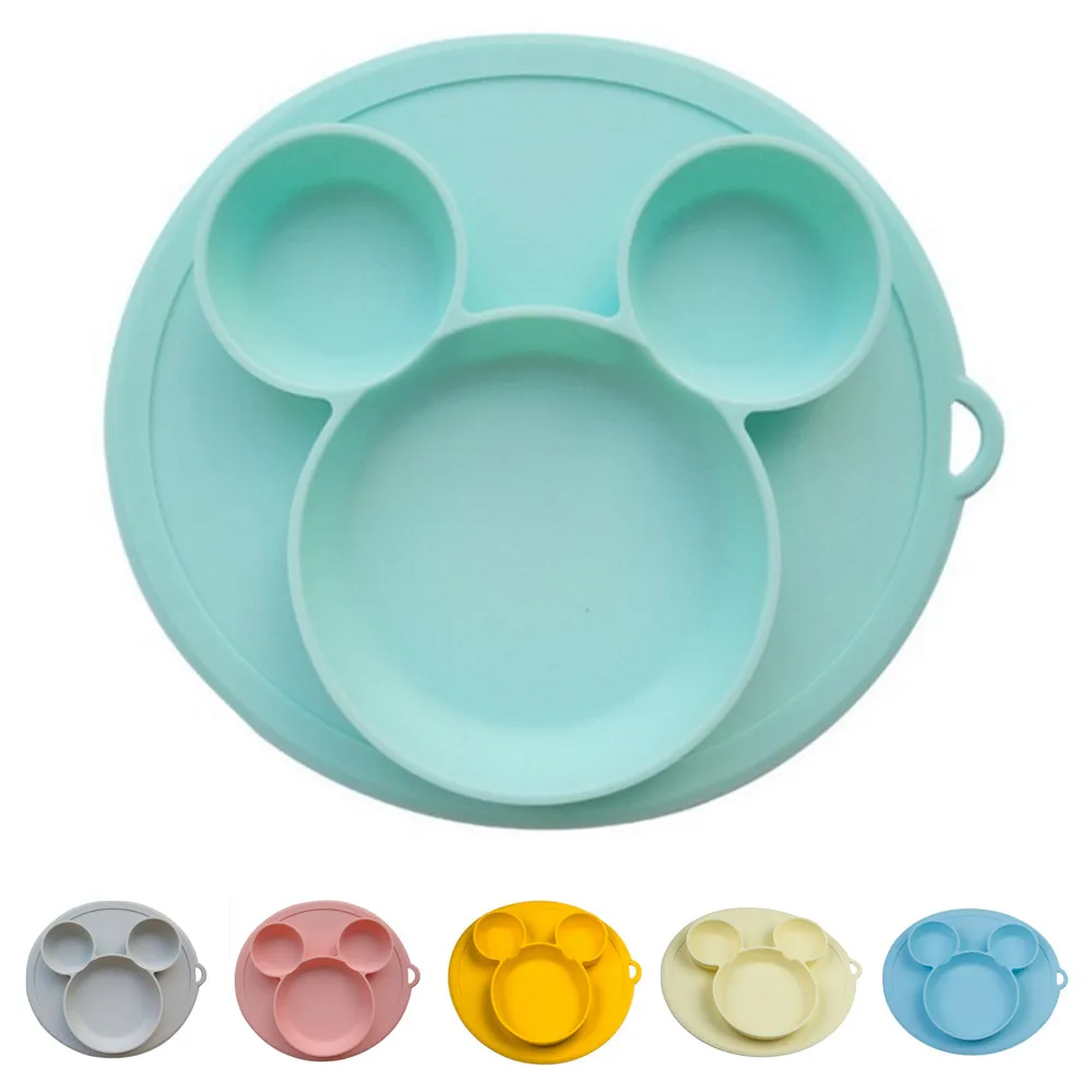 Безопасная силиконовая столовая тарелка для детей с милыми мультяшными рисунками, детская посуда на присоске, обучающая посуда для детей, миски для кормления