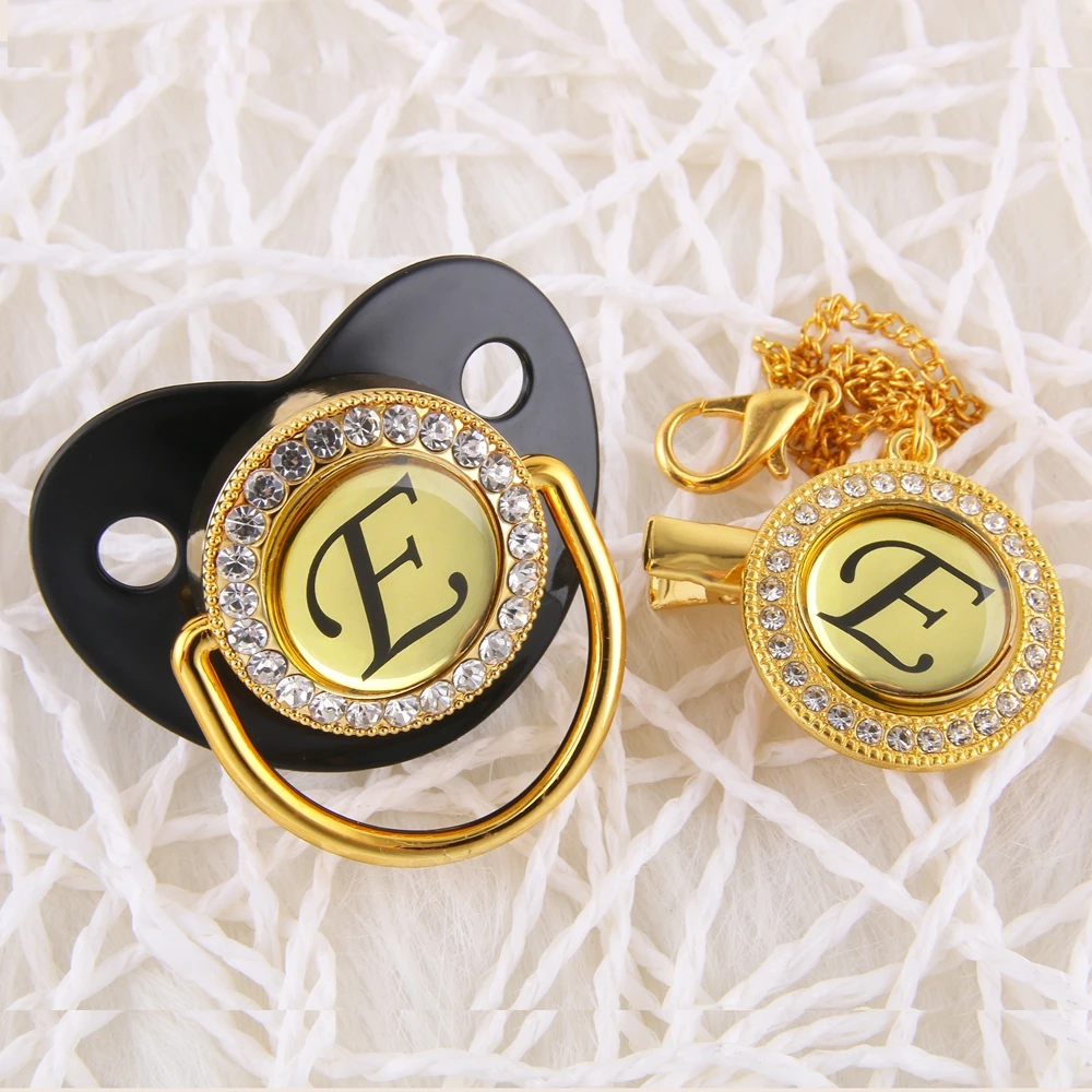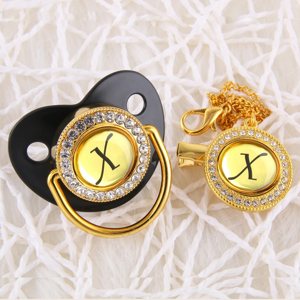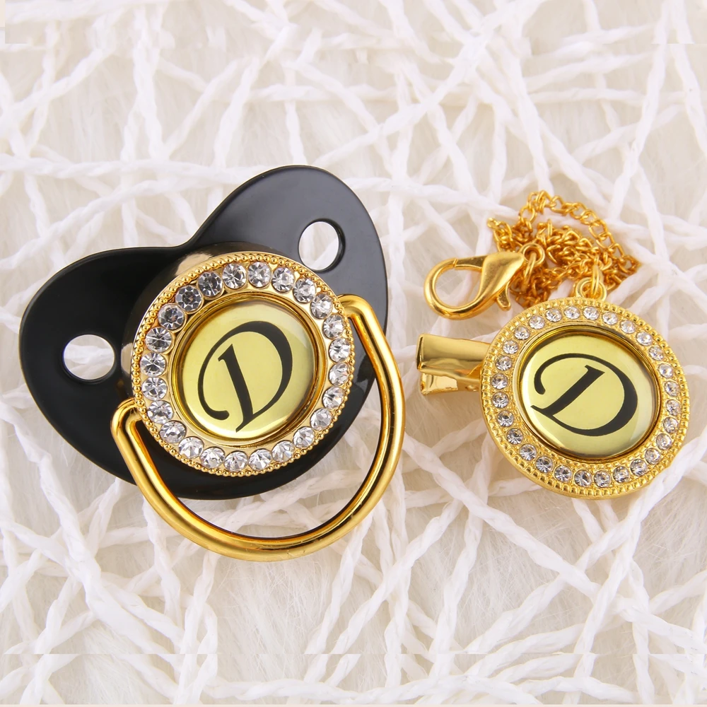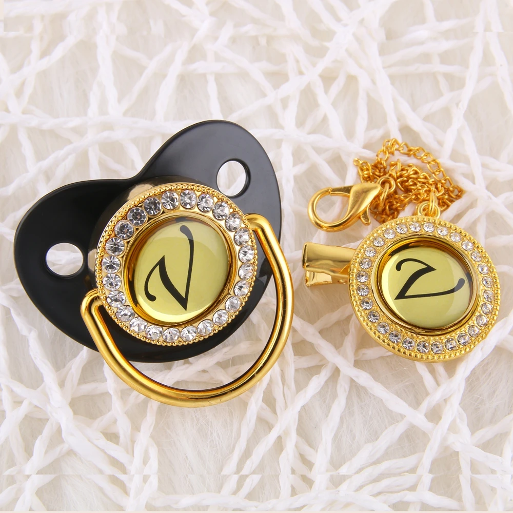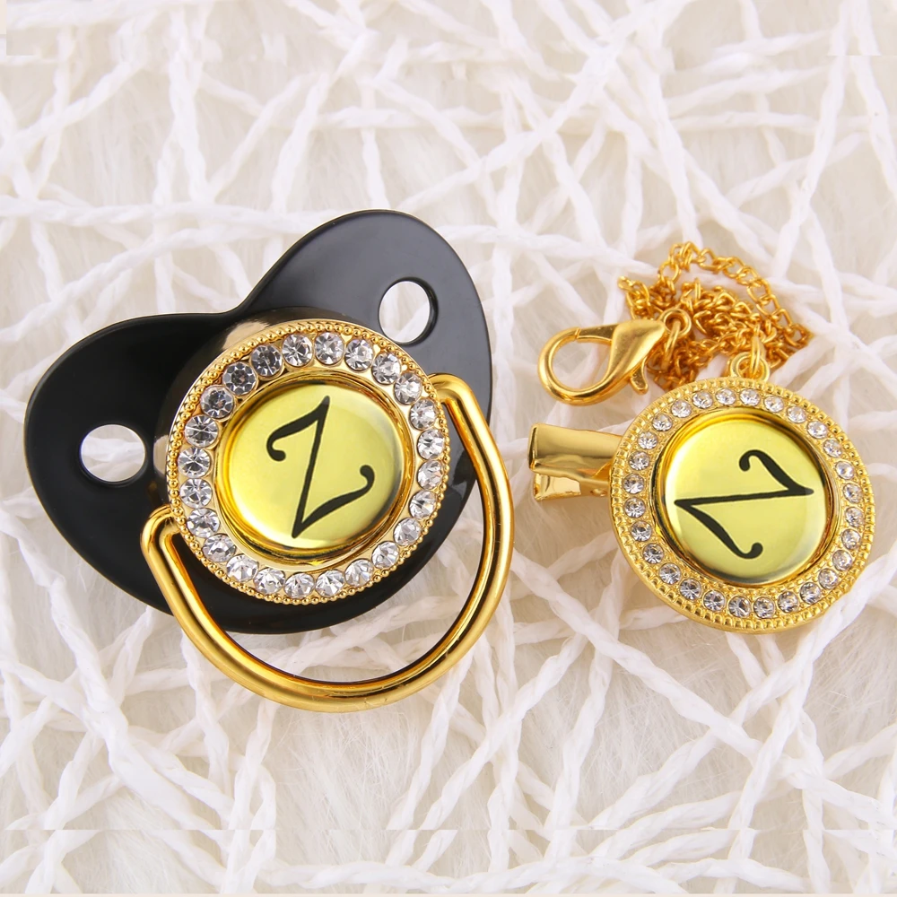 Стильный, с блеском золота соски-пустышки с Стразы 26 букв с гравир...