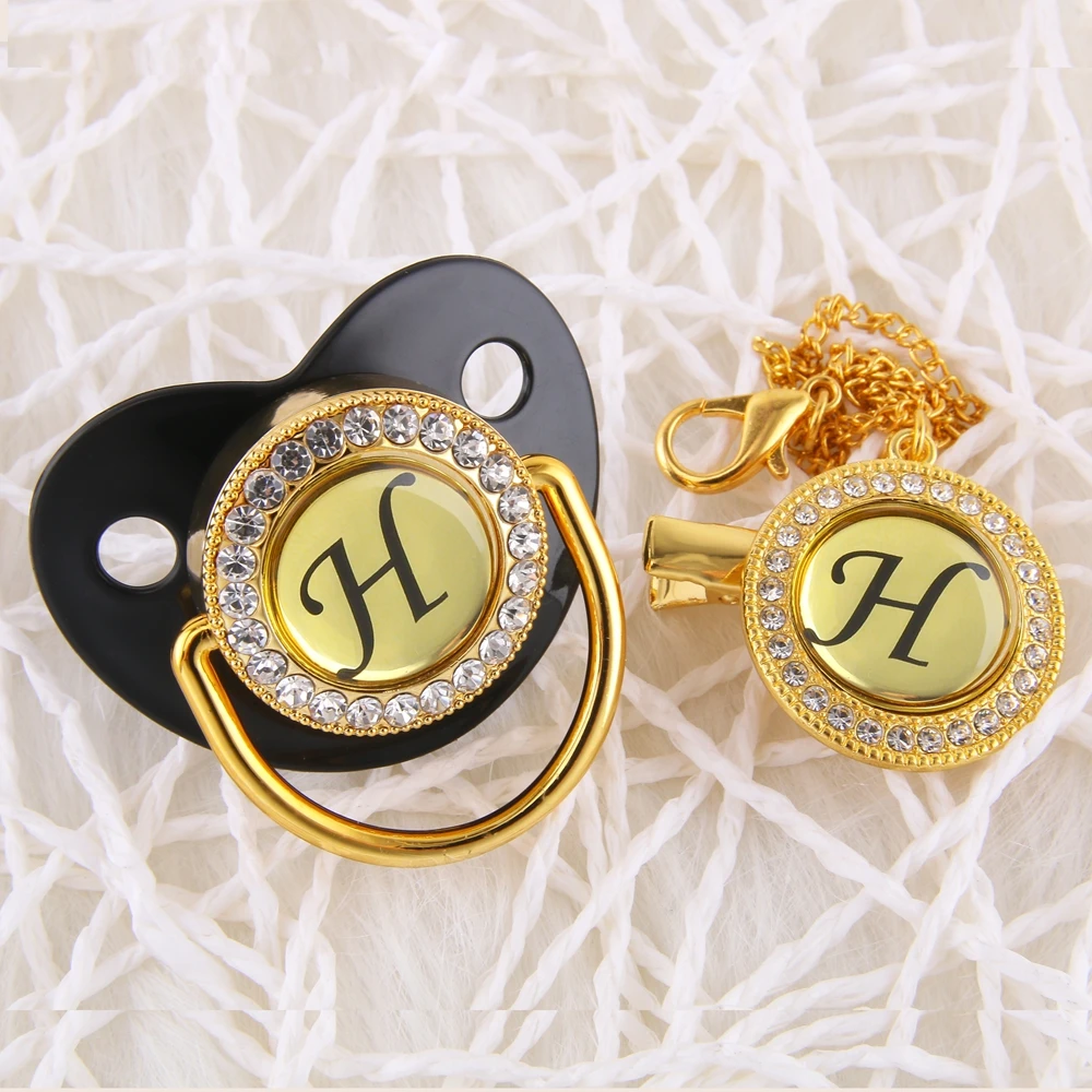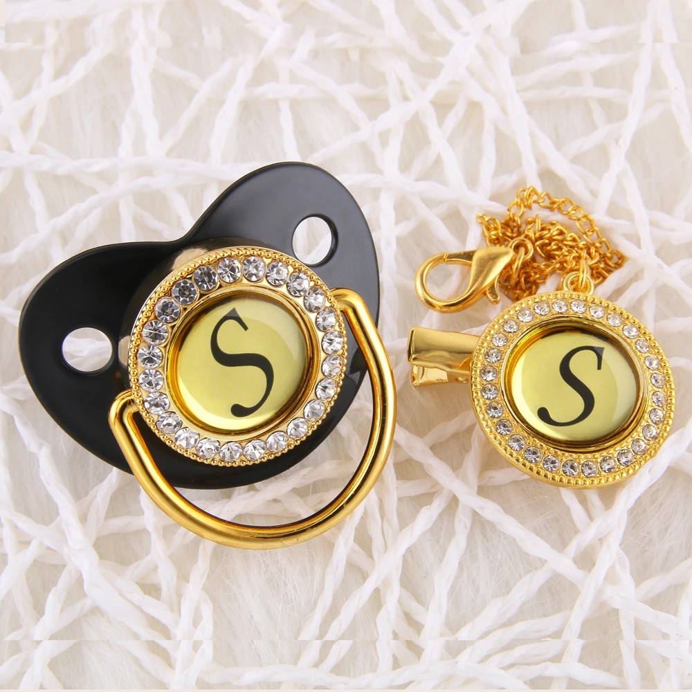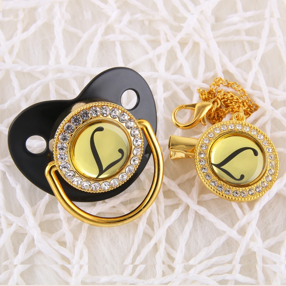 Роскошная детская соска, 26 инициалов, черная блестящая соска, держатель, зажим, детская пустышка без БФА