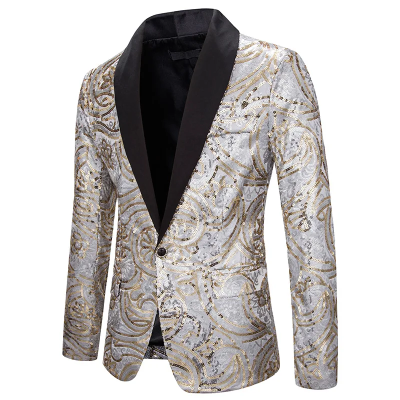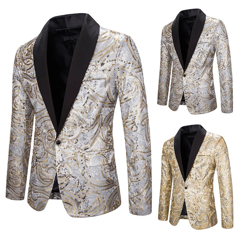 Блестящий мужской золотистый блестящий серебристый Блейзер, модный ...