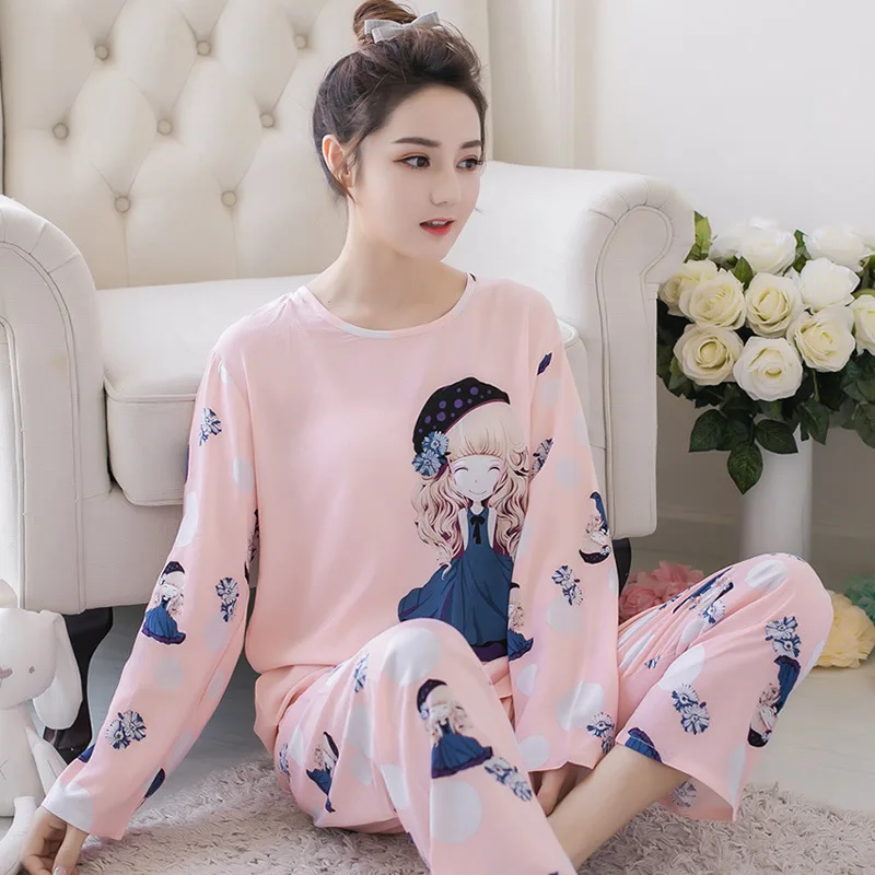 Пижама женская с длинным рукавом, простые свободные брюки с круглым...