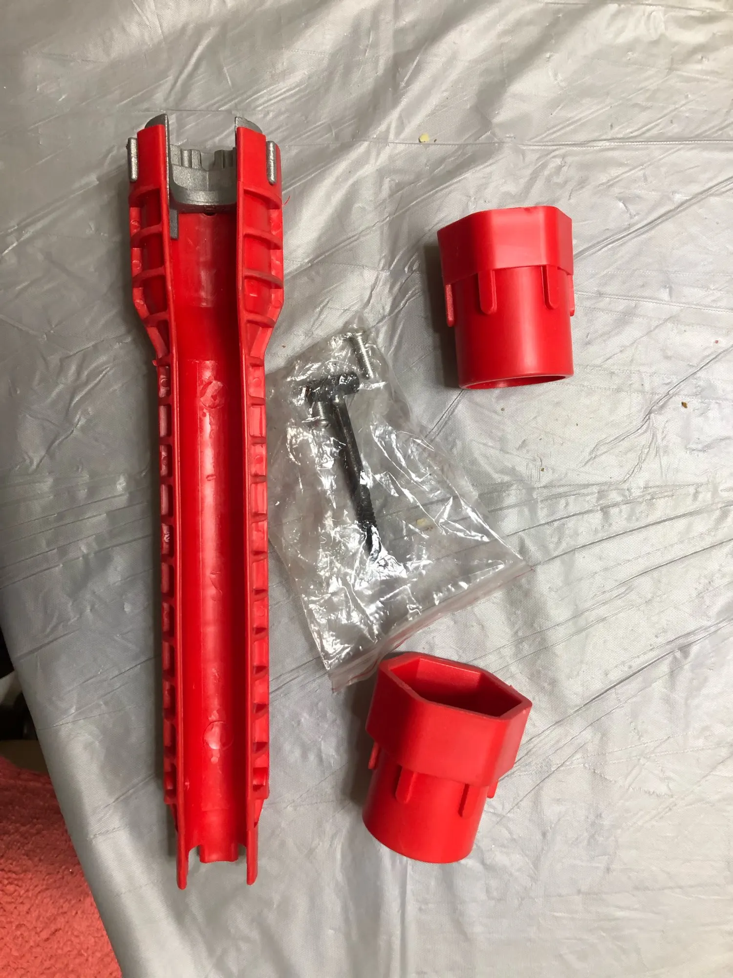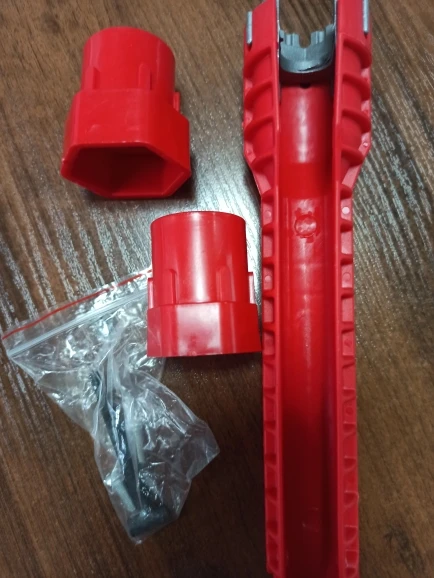 такой ключ очень удобен, могу даже я сама открутить на кухне, под мойкой, болты Ключ красивый, полный комплект, заказ пришёл быстро
