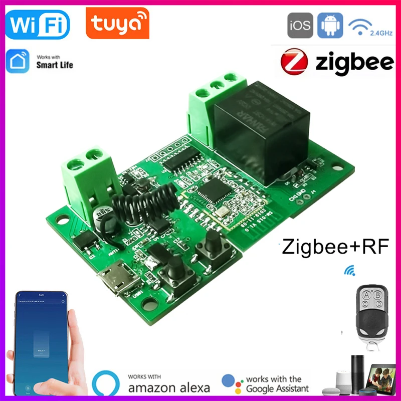 Tuya Zigbee беспроводной модуль переключателя RF433 получить 10A реле Голосовое управление умное приложение жизни для Alexa Google домашний помощник