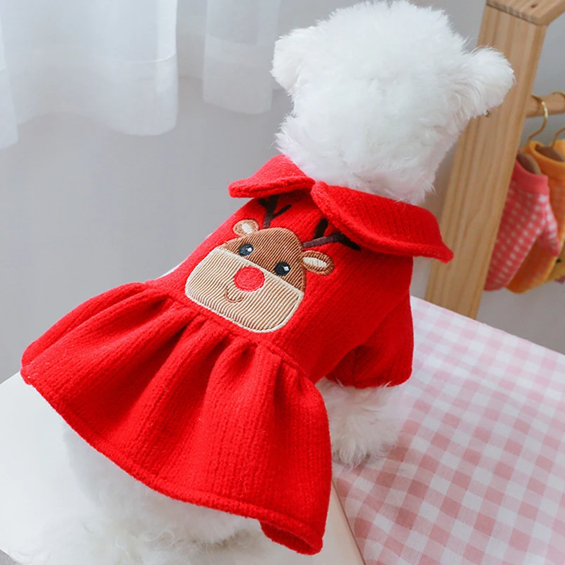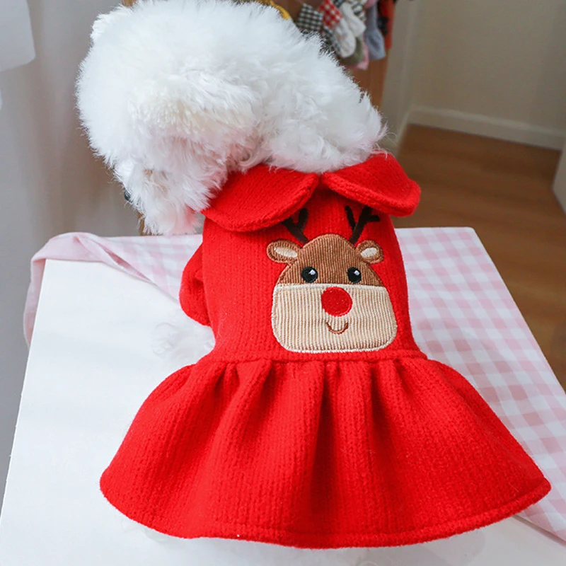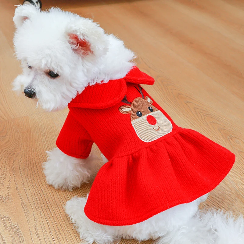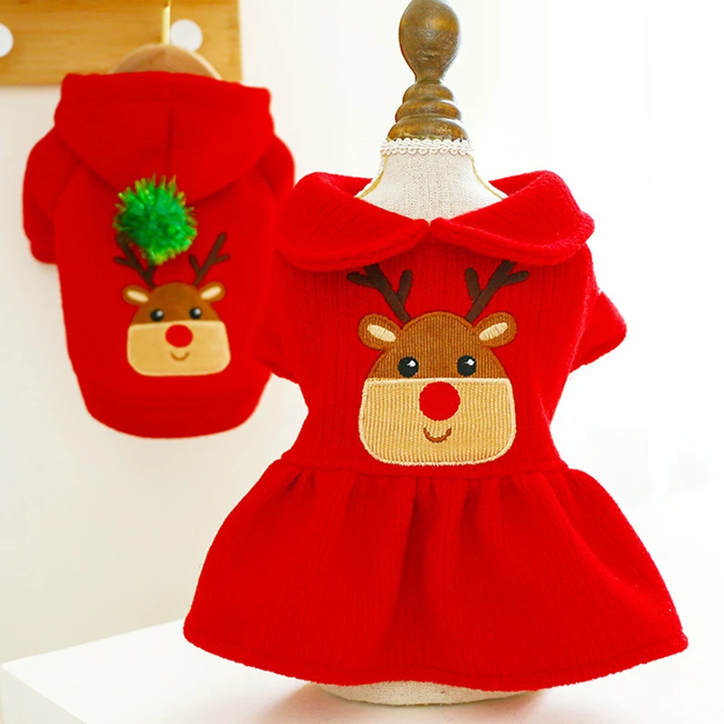 Красная одежда для собак, куртка для собак, зимняя одежда для собак, платье с рисунком лося, пальто с капюшоном для рождественских собак, куртка для чихуахуа L