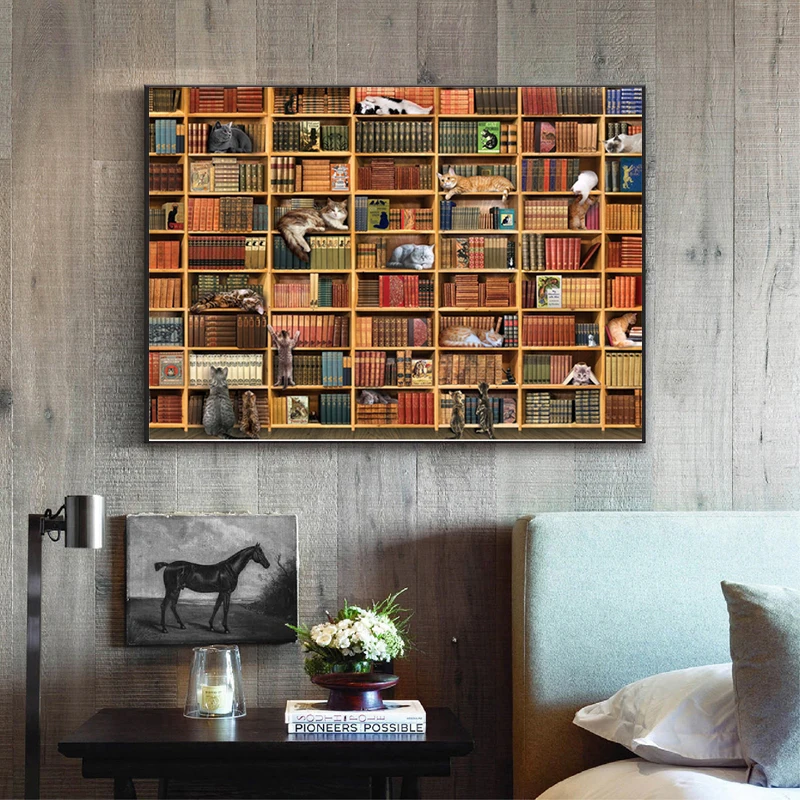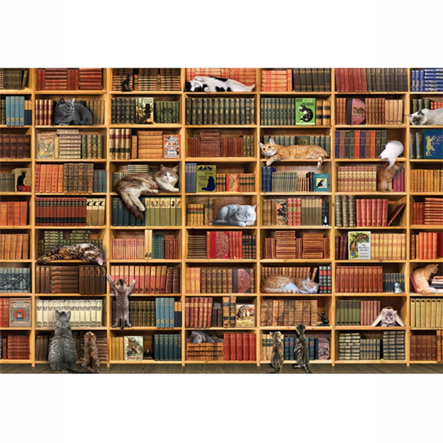 Алмазная живопись сделай сам для детей, Набор для вышивки крестиком в виде кошки, библиотеки, мозаика, полноразмерная вышивка, домашнее ремесло, художественное украшение